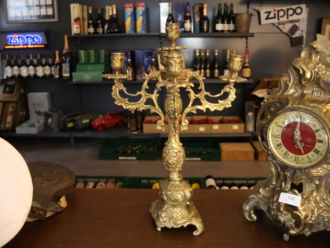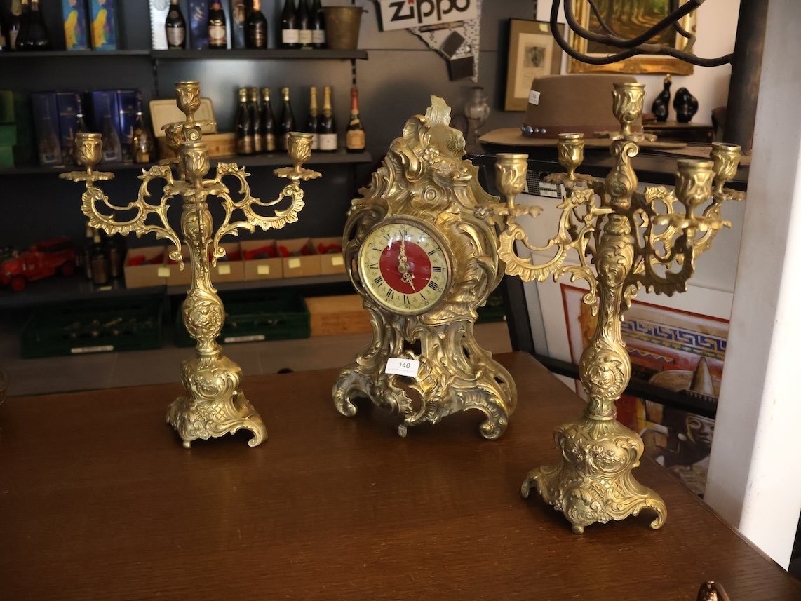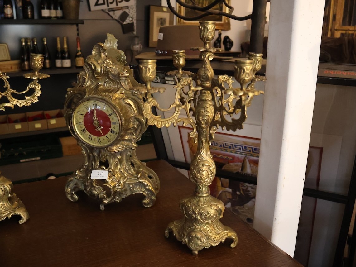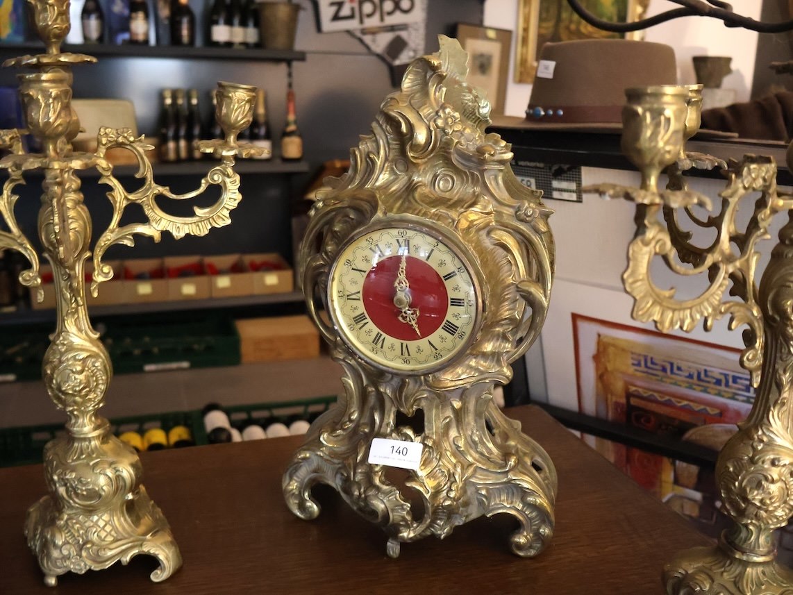 2x Kandelaar, 1x Klok, Messing?