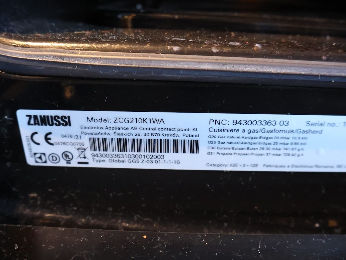 Model: ZCG210K1WA, Afmeting: 50x56x87cm, Werking Ongekend!