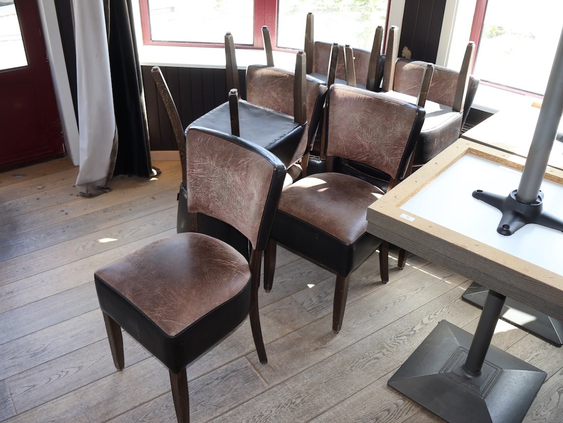 Afmeting: 65x70x75cm, 4x Tafel, 8x Stoelen Kleur Bruin Lederlook