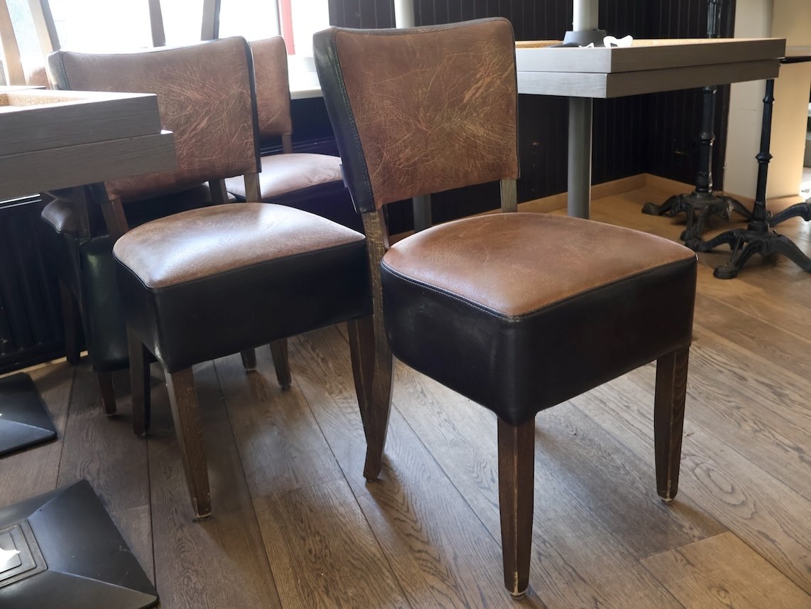 Afmeting: 65x70x75cm, 4x Tafel, 5x Stoelen Kleur Bruin Lederlook