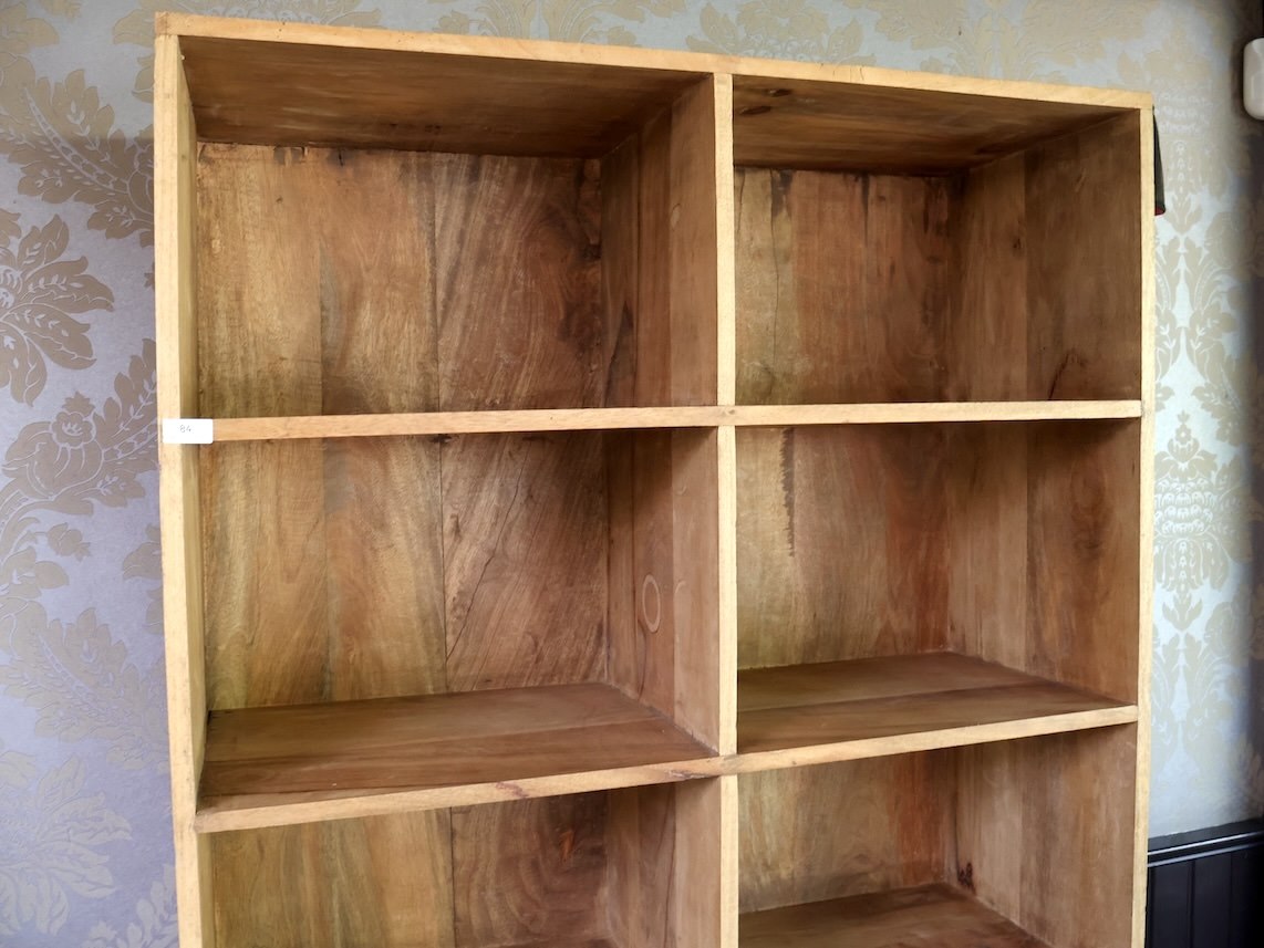 Hoge houten vakjeskast