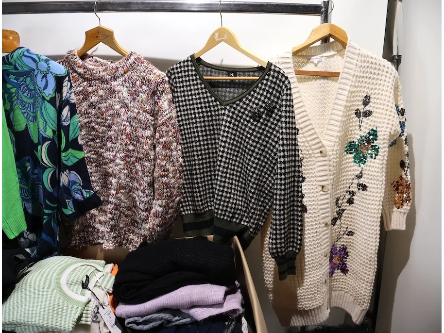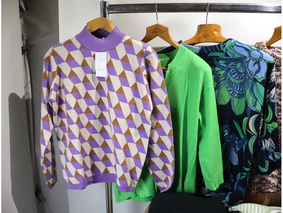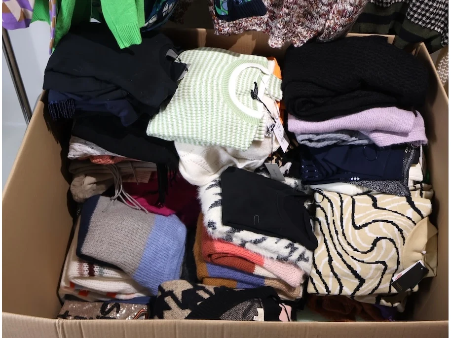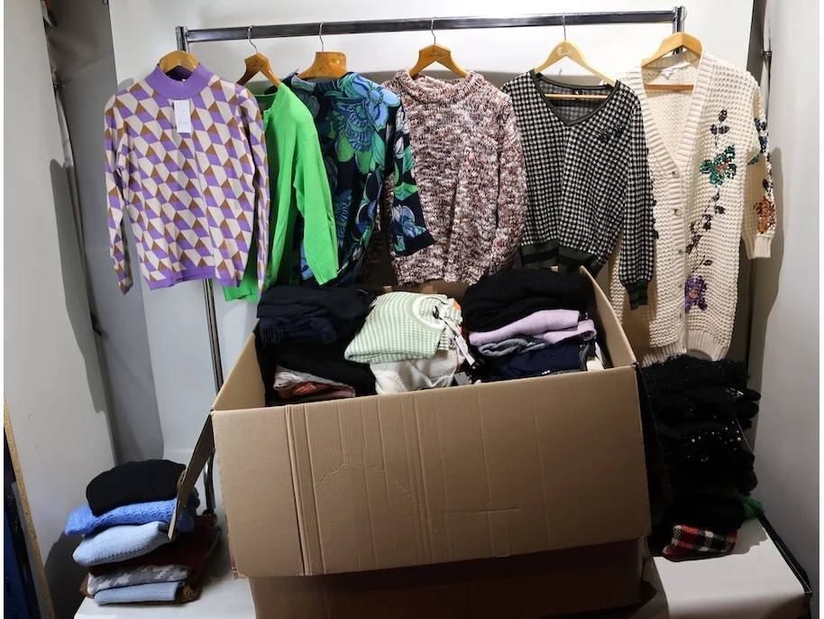 Voornamelijk (winter)truien, Verschillende maten en modellen, Plm 198 stuks, Exclusief kledingrek en kapstokken
