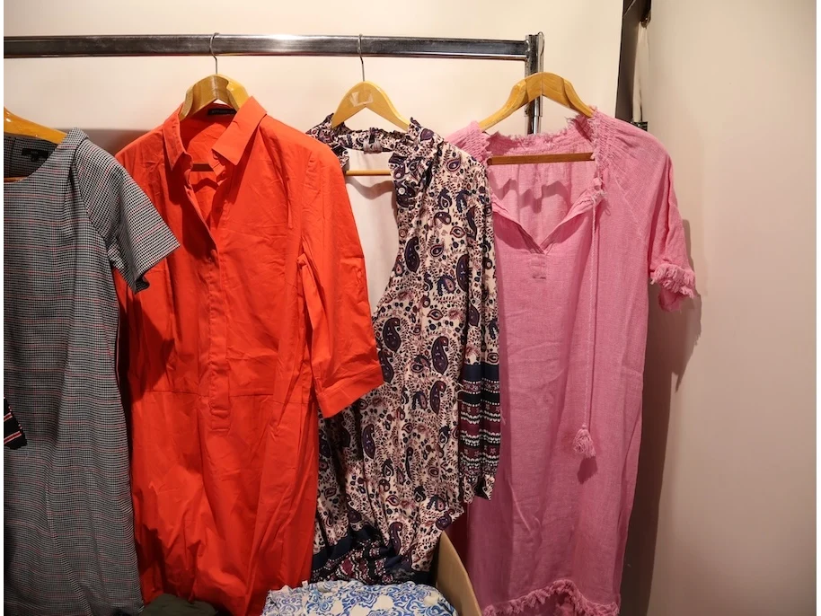 Voornamelijk kleedjes, Verschillende maten en modellen, Plm 210 stuks, Exclusief kledingrek en kapstokken