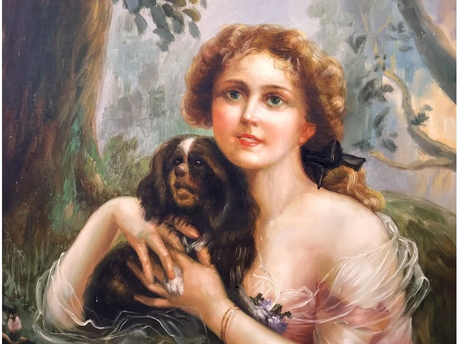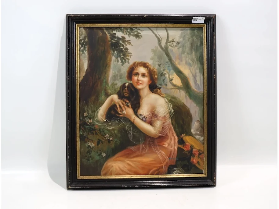 Vrouw met Hond, Afmeting: 73x63cm, Olie op Doek