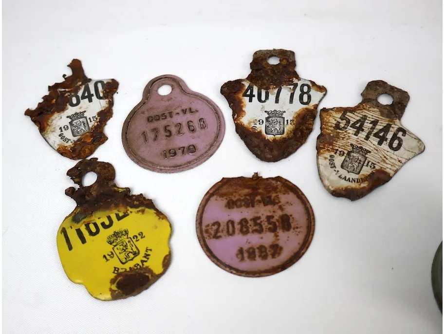 4x Lampekap, 5x Oude Fietsnummers, Perforator