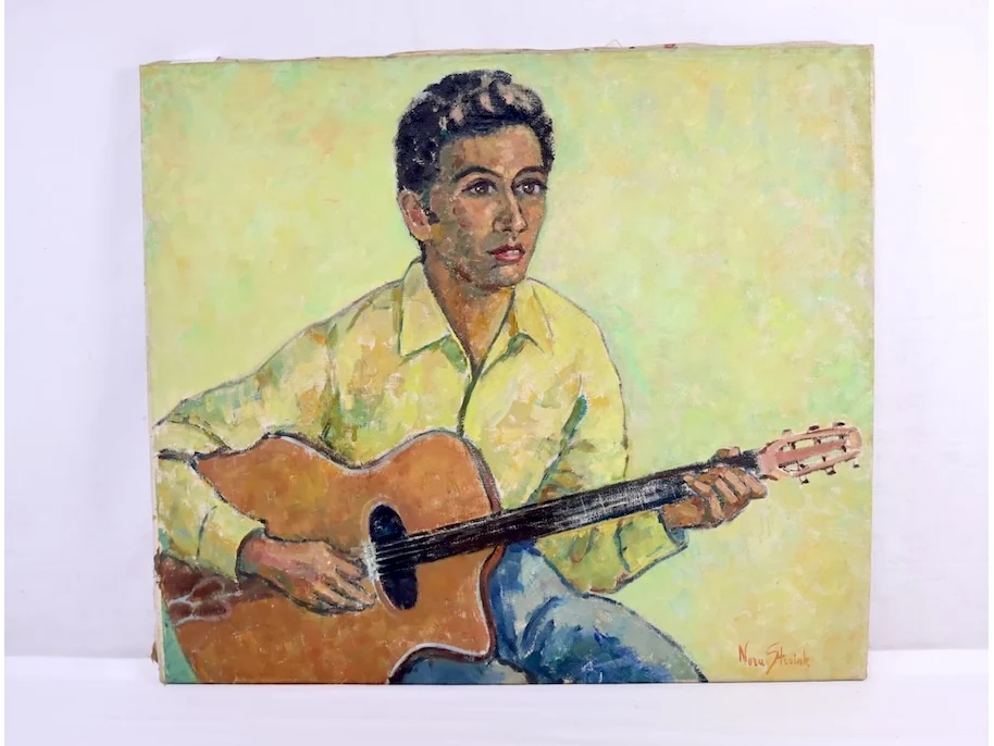 Man met Gitaar, Afmeting: 80x70cm, Olie op Doek