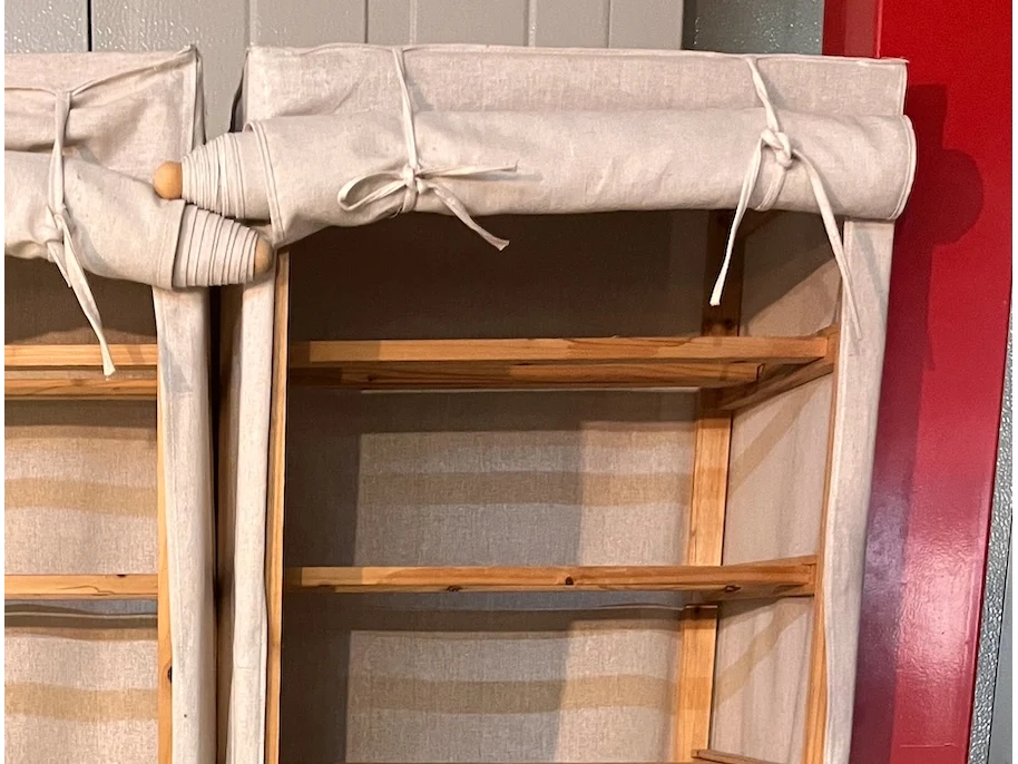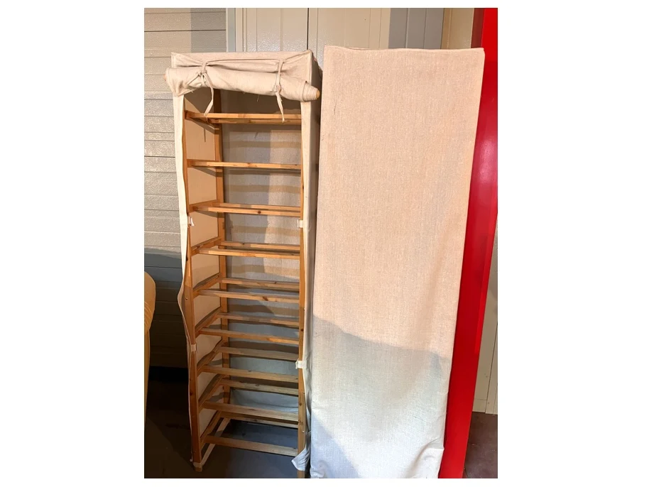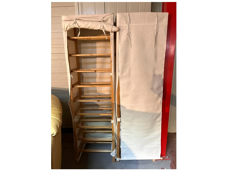 Afmeting: 48x33,5x165cm, 2 Houten rekjes met stoffen hoes