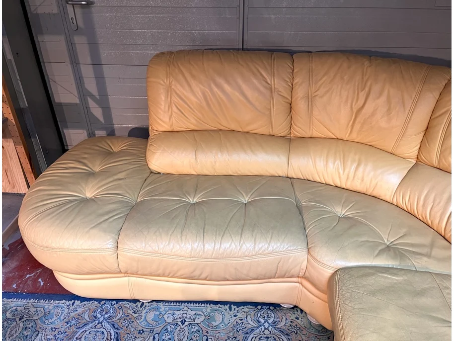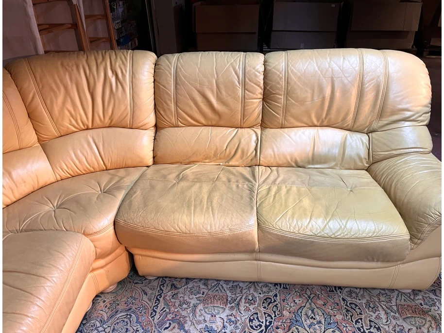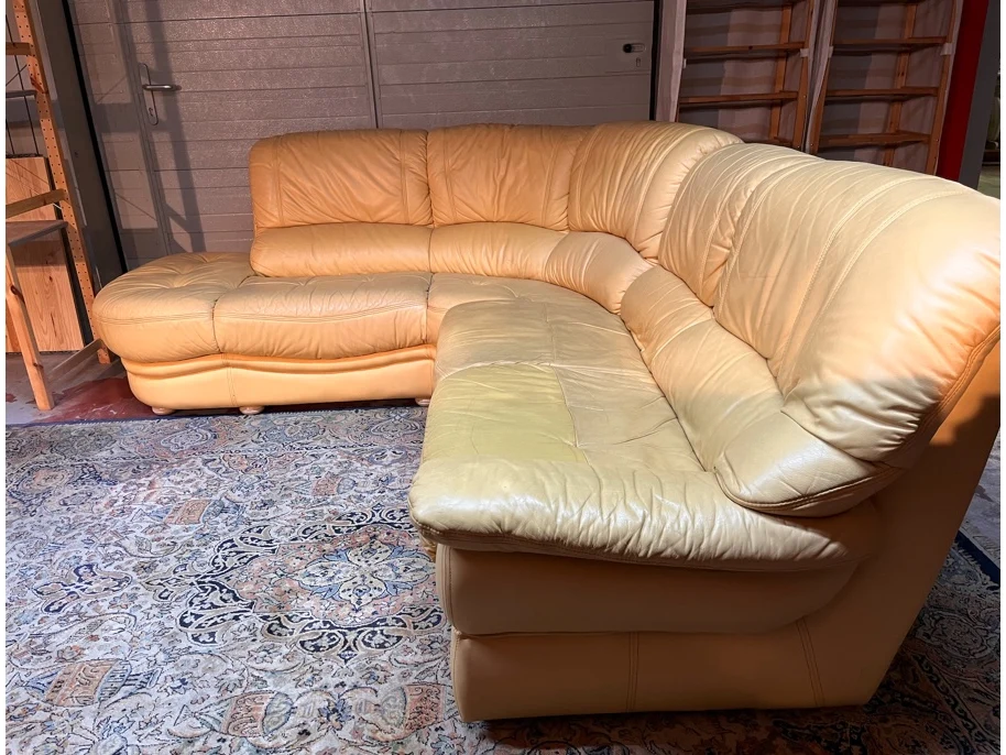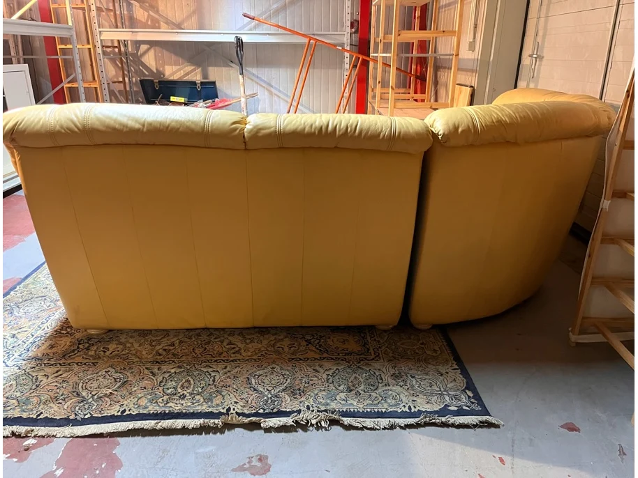 Afmeting langste zijde: plm 243cm, Afmeting kortste zijde: plm 200cm, Breedte: 80cm, Diepte zitvlak: 55cm, Kleur: geel