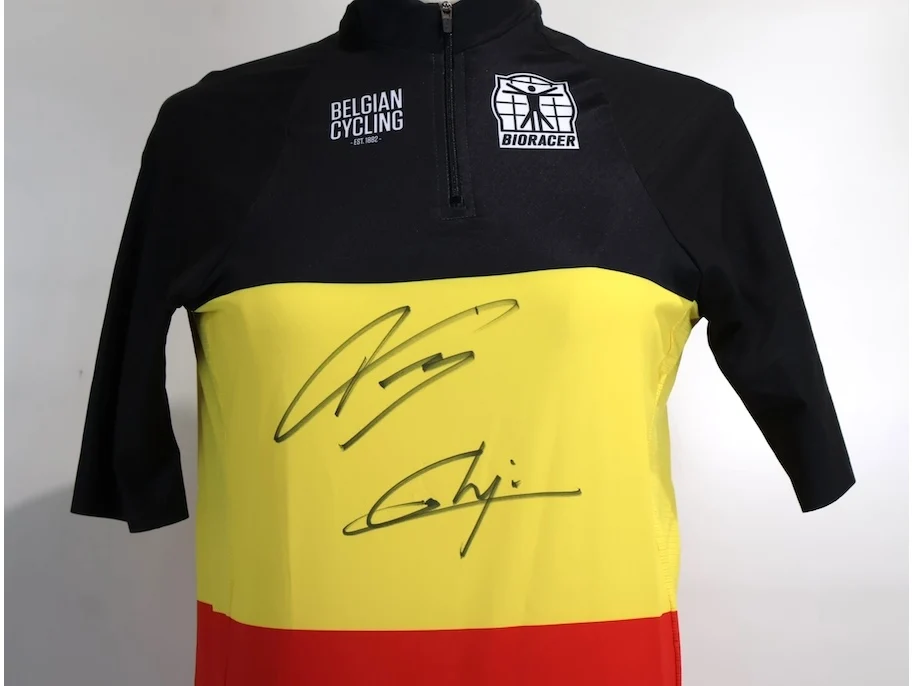 Getekend door de 2 kampioenen: Justine Ghekiere en Tim Wellens geschonken door Belgian Cycling ten voordele van vzw Warre’s Hope. De volledige opbrengst gaat integraal naar Warre's Hope!
