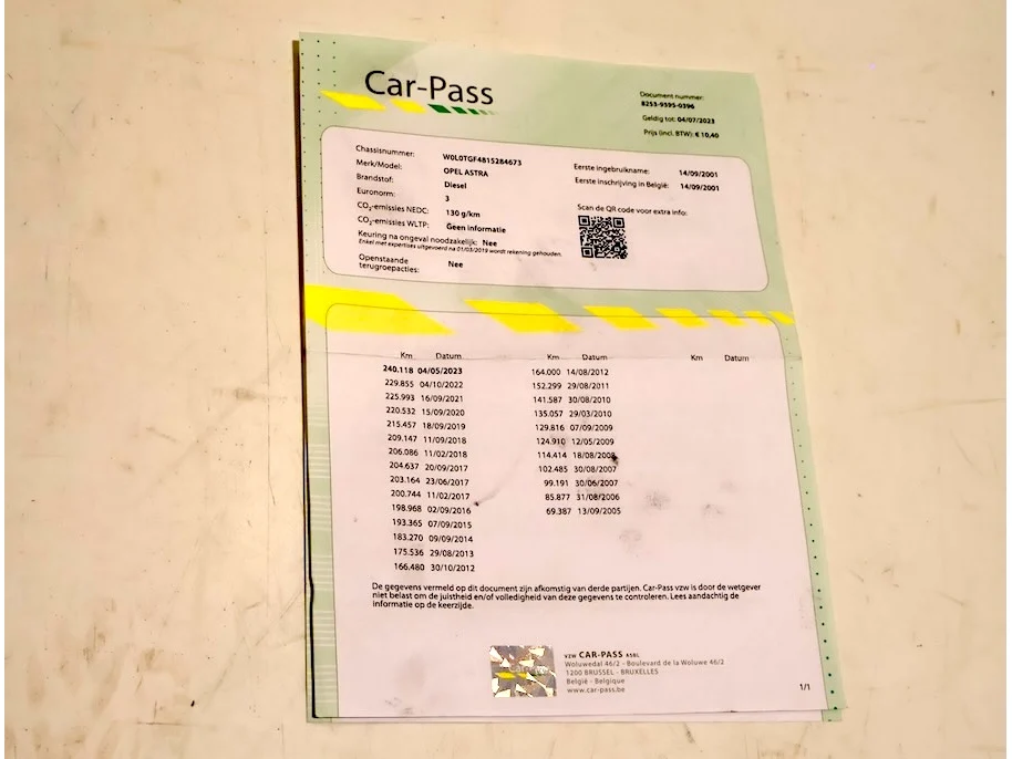 Opel Astra - 246964km - Motorinhoud: 1686 - Motorvermogen: 55kW - Gasolie - Milieuklasse: Euro 3