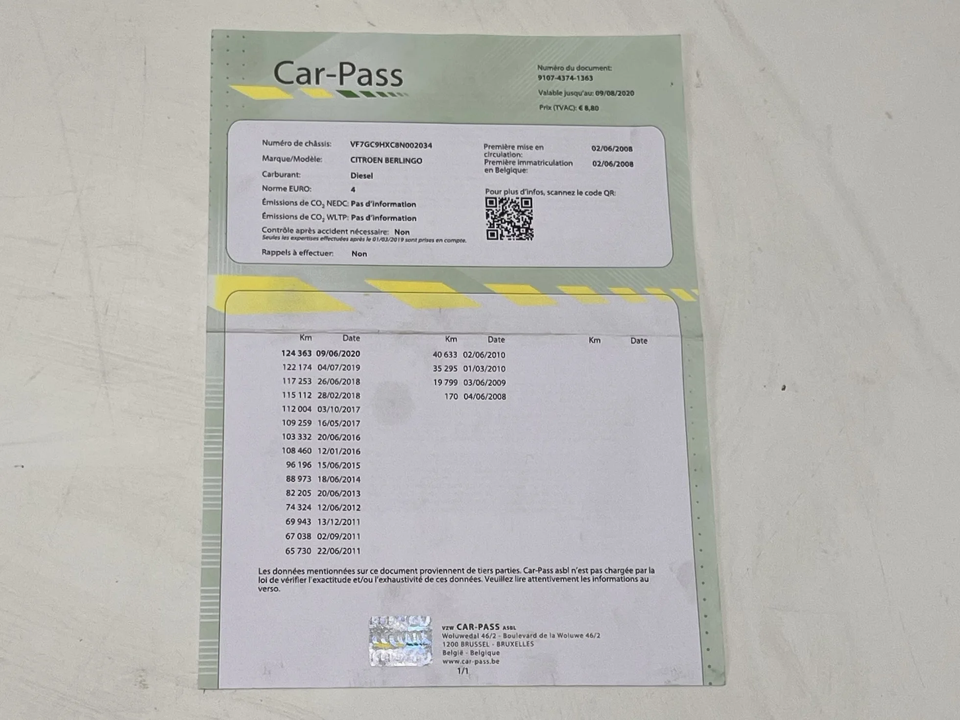 Citroën Berlingo - 155851km - Motorinhoud: 1560 - Motorvermogen: 66kW - Gasolie - Milieuklasse: Euro 4