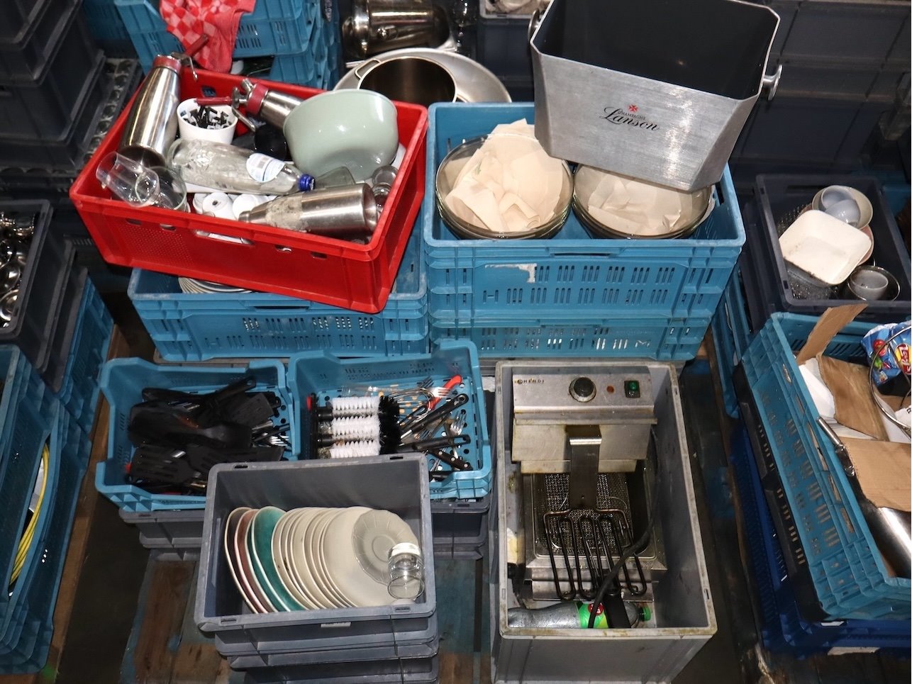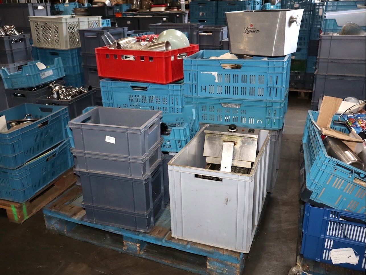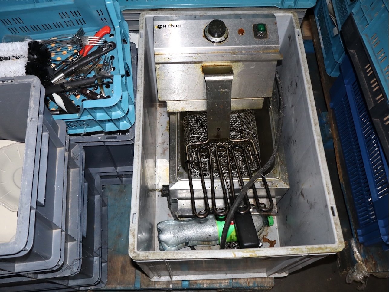 ONGEWASSEN!!! Inhoud Pallet, Inclusief Bakken. Hendi Friteuse, Spatels