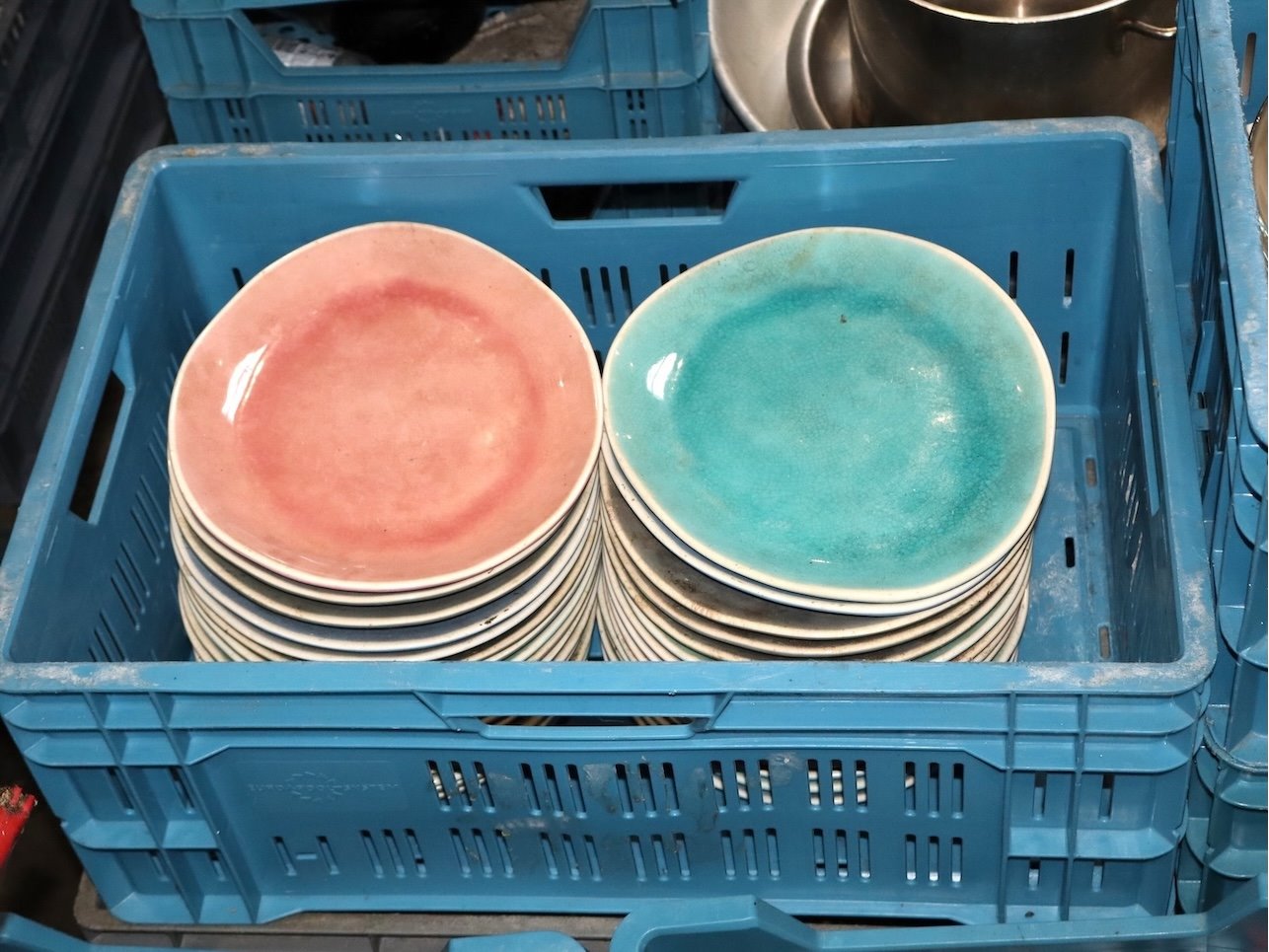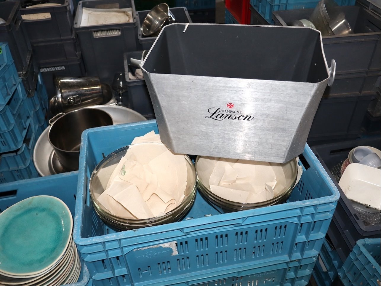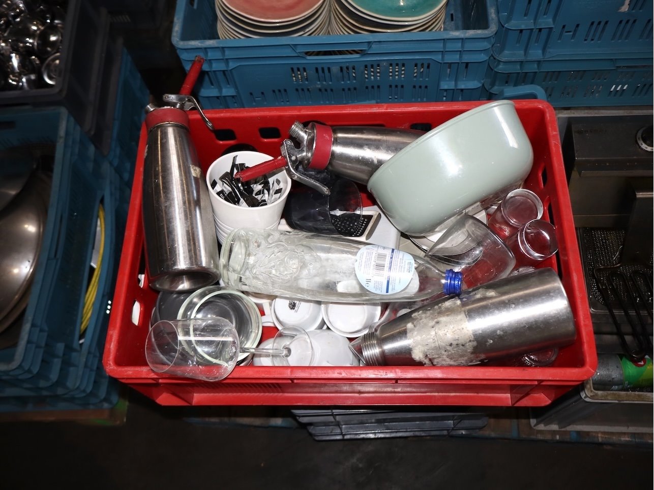 ONGEWASSEN!!! Inhoud Pallet, Inclusief Bakken. Hendi Friteuse, Spatels
