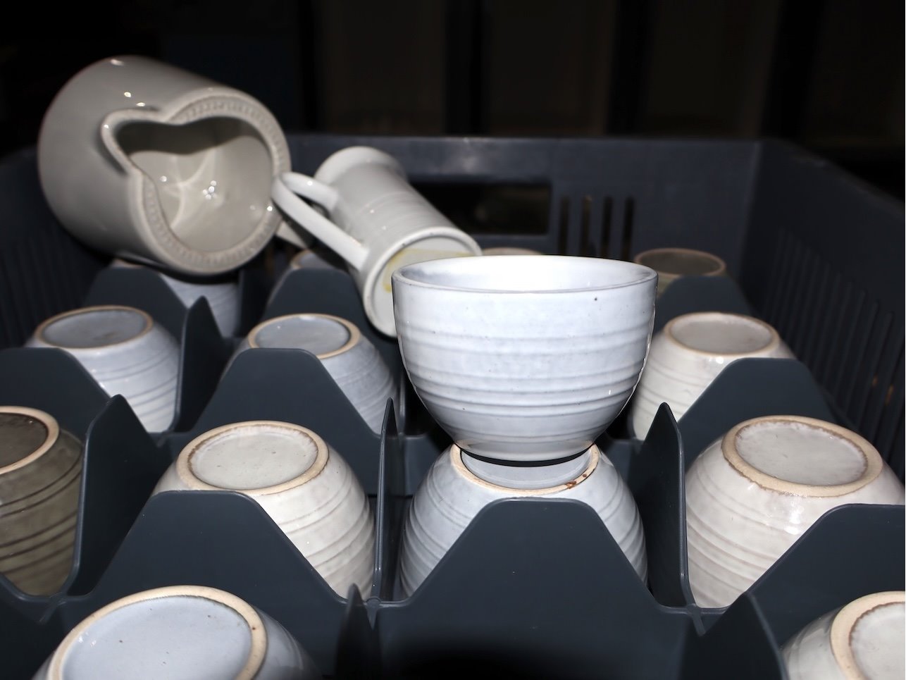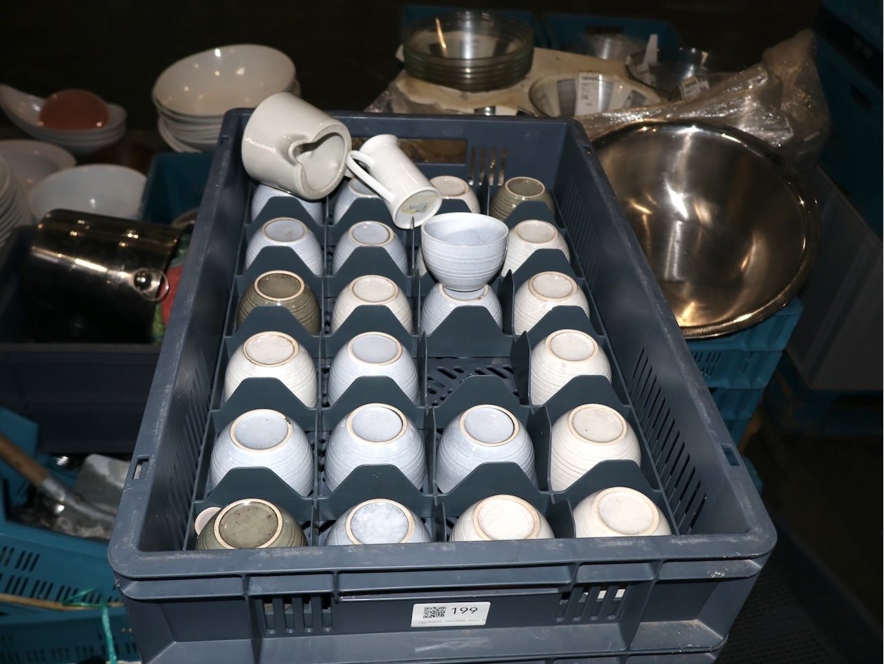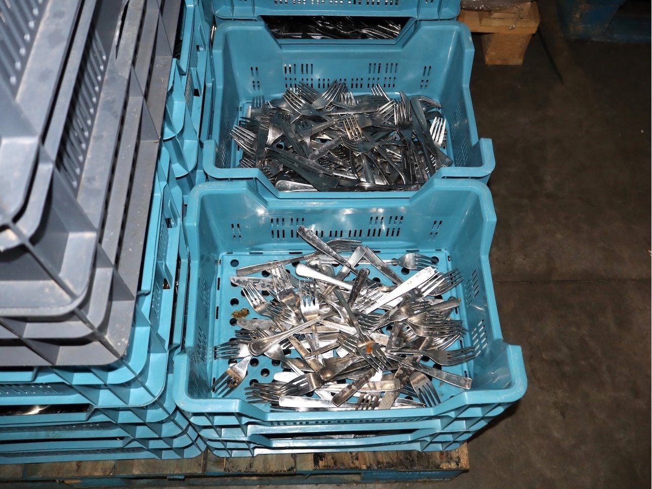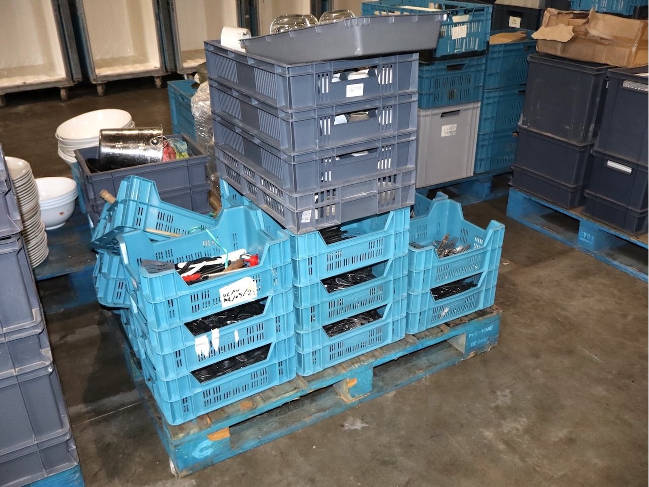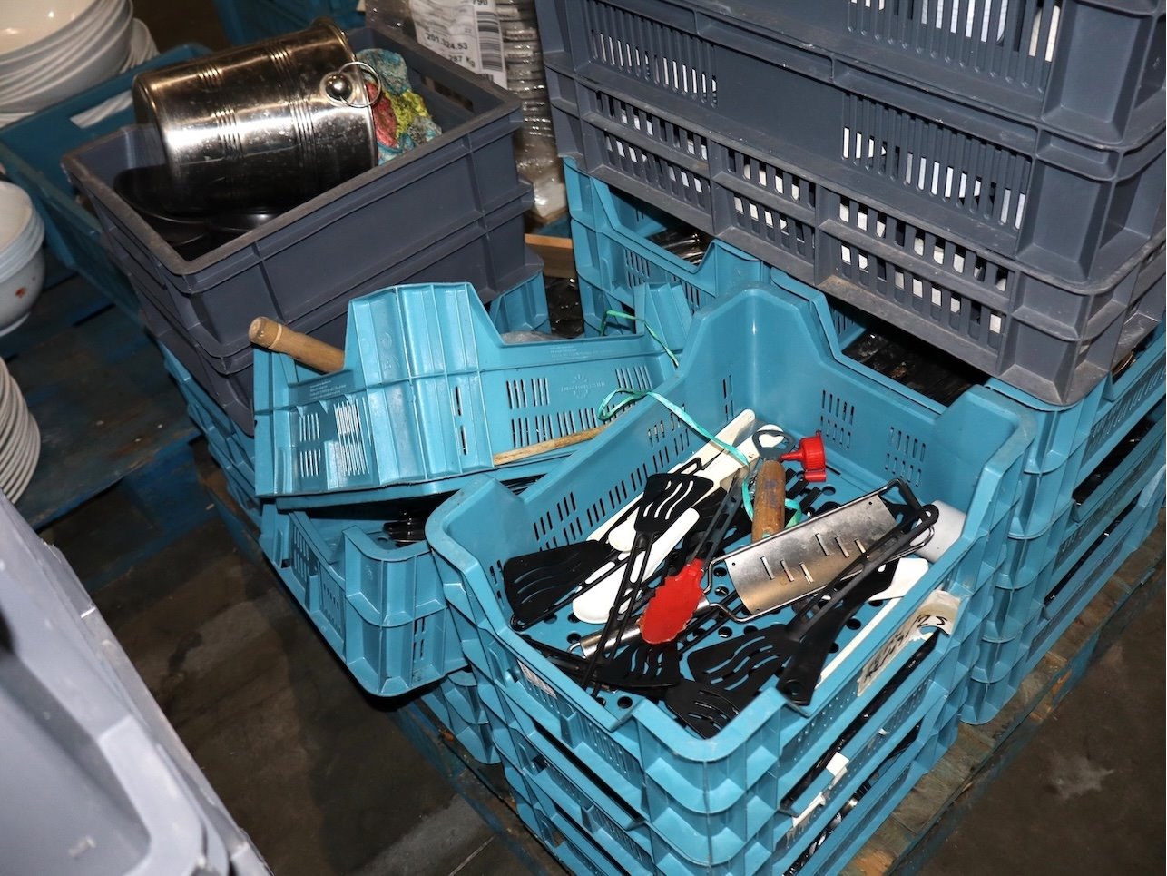 ONGEWASSEN!!! Inhoud Pallet, Inclusief Bakken. Bestek, Tassen,...