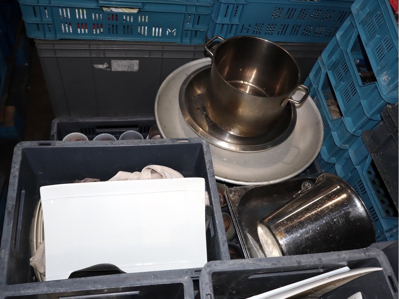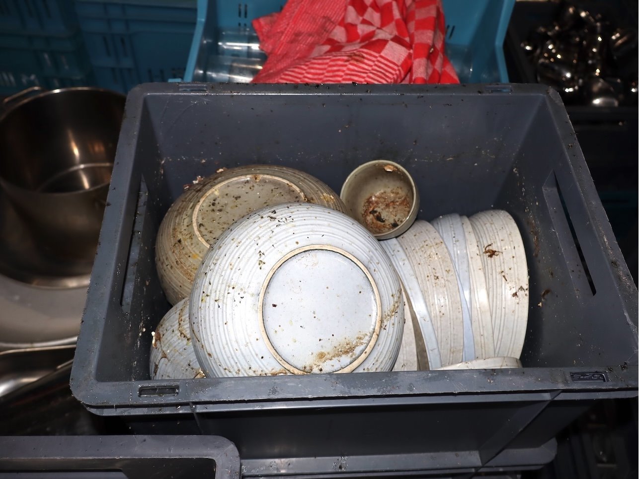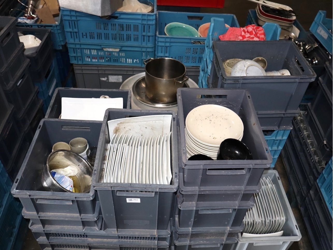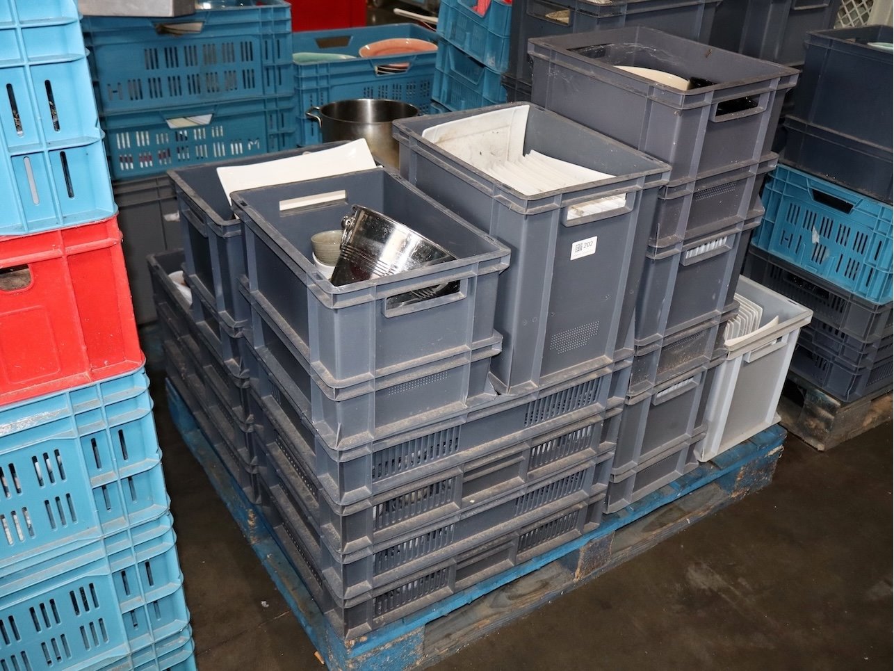 ONGEWASSEN!!! Inhoud Pallet, Inclusief Bakken. Borden, Schaaltjes,...