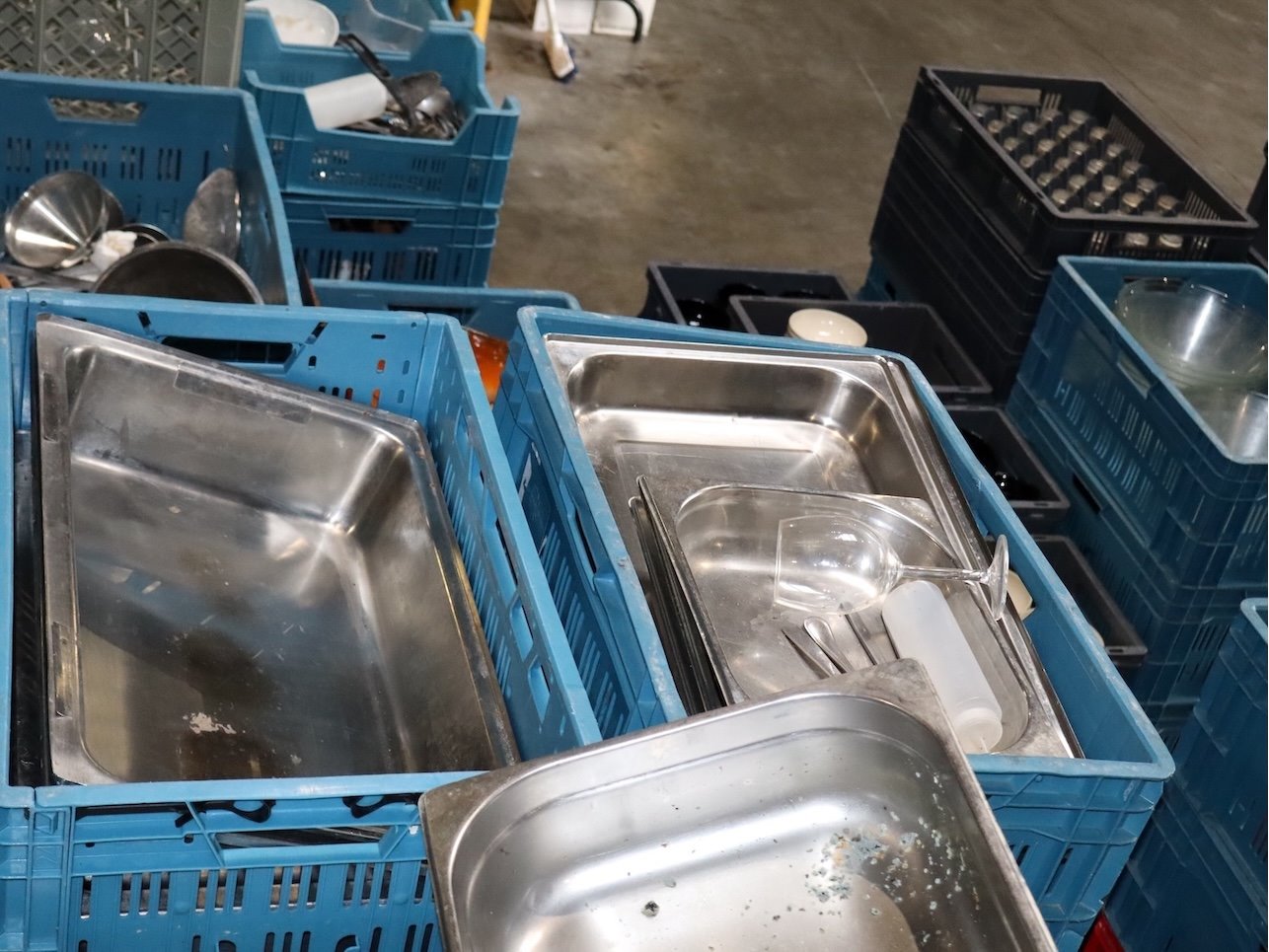 ONGEWASSEN!!! Inhoud Pallet, Inclusief Bakken. Gastroschalen,...
