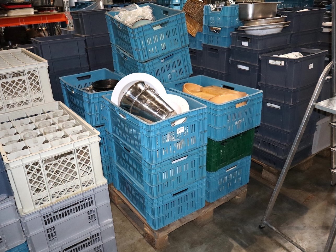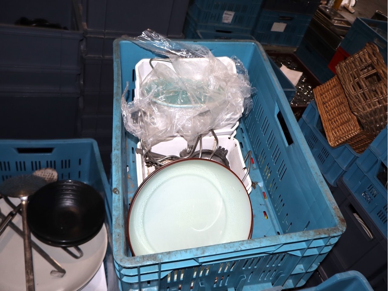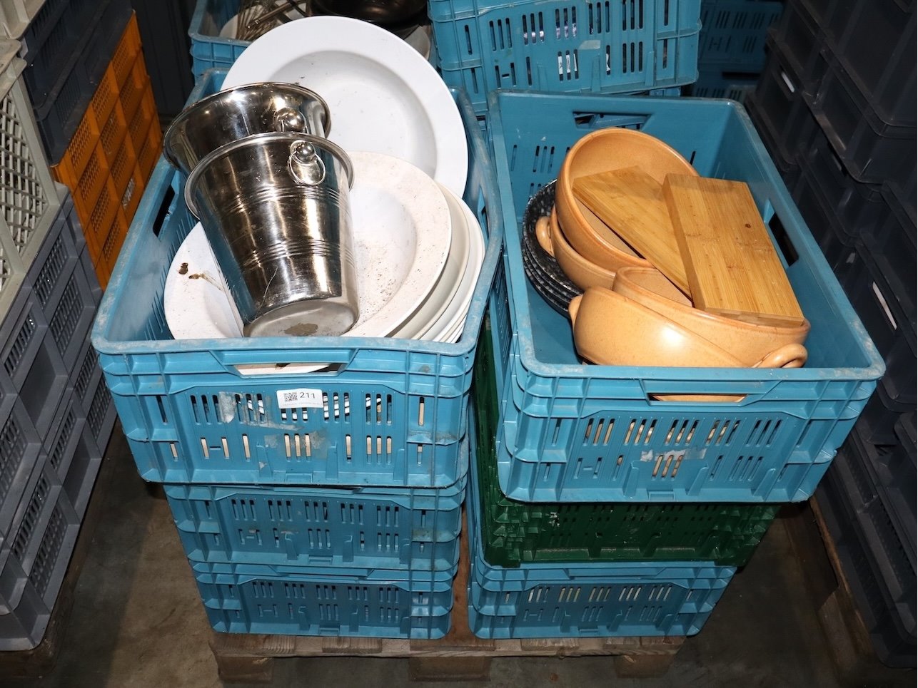 ONGEWASSEN!!! Inhoud Pallet, Inclusief Bakken. Borden, Schalen,...