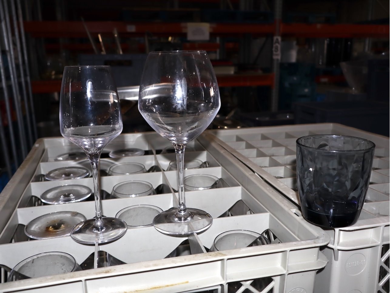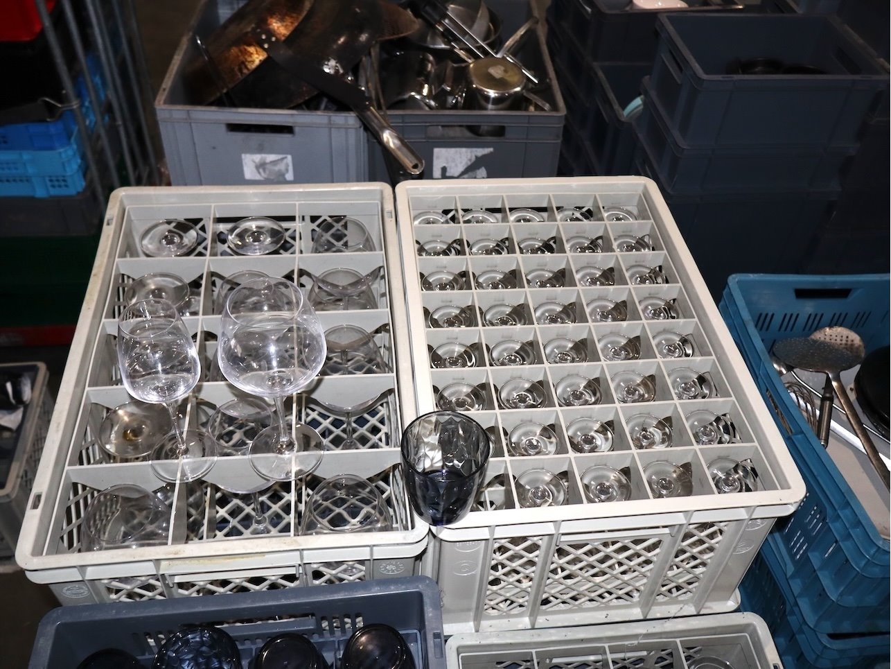 ONGEWASSEN!!! Inhoud Pallet, Inclusief Bakken. Glazen,...