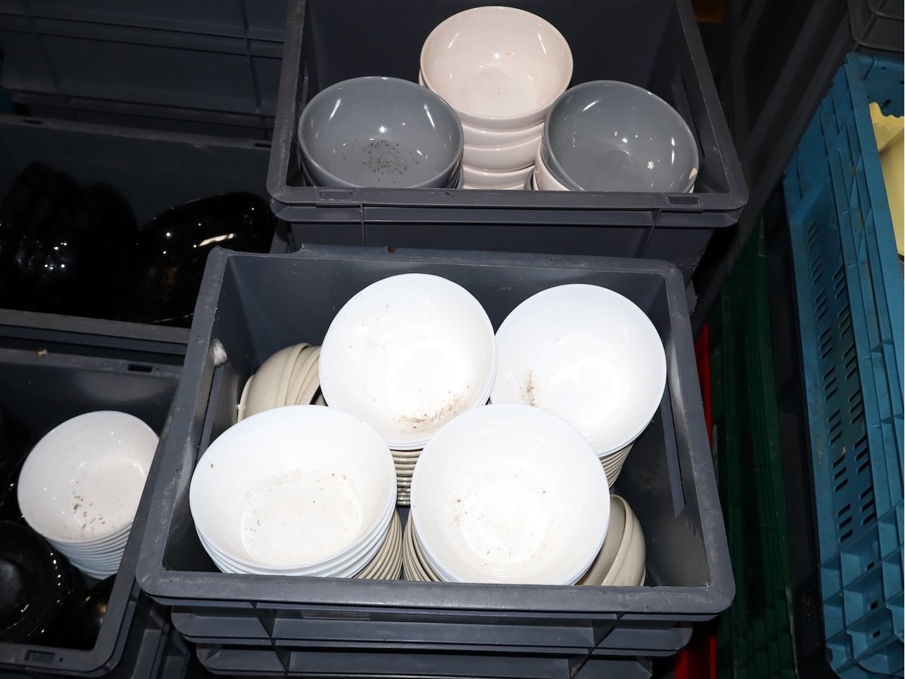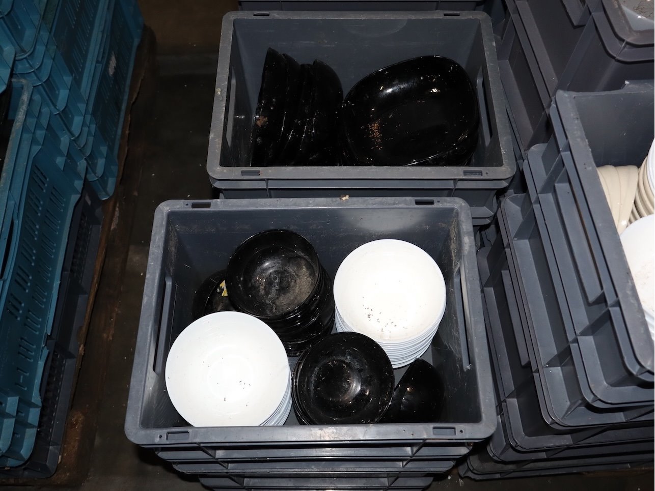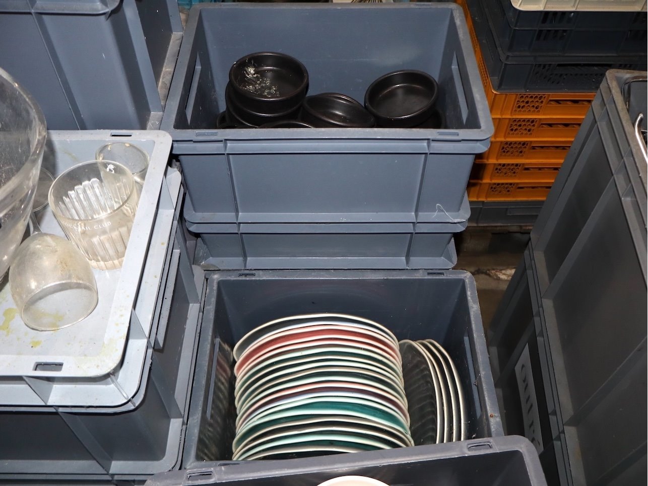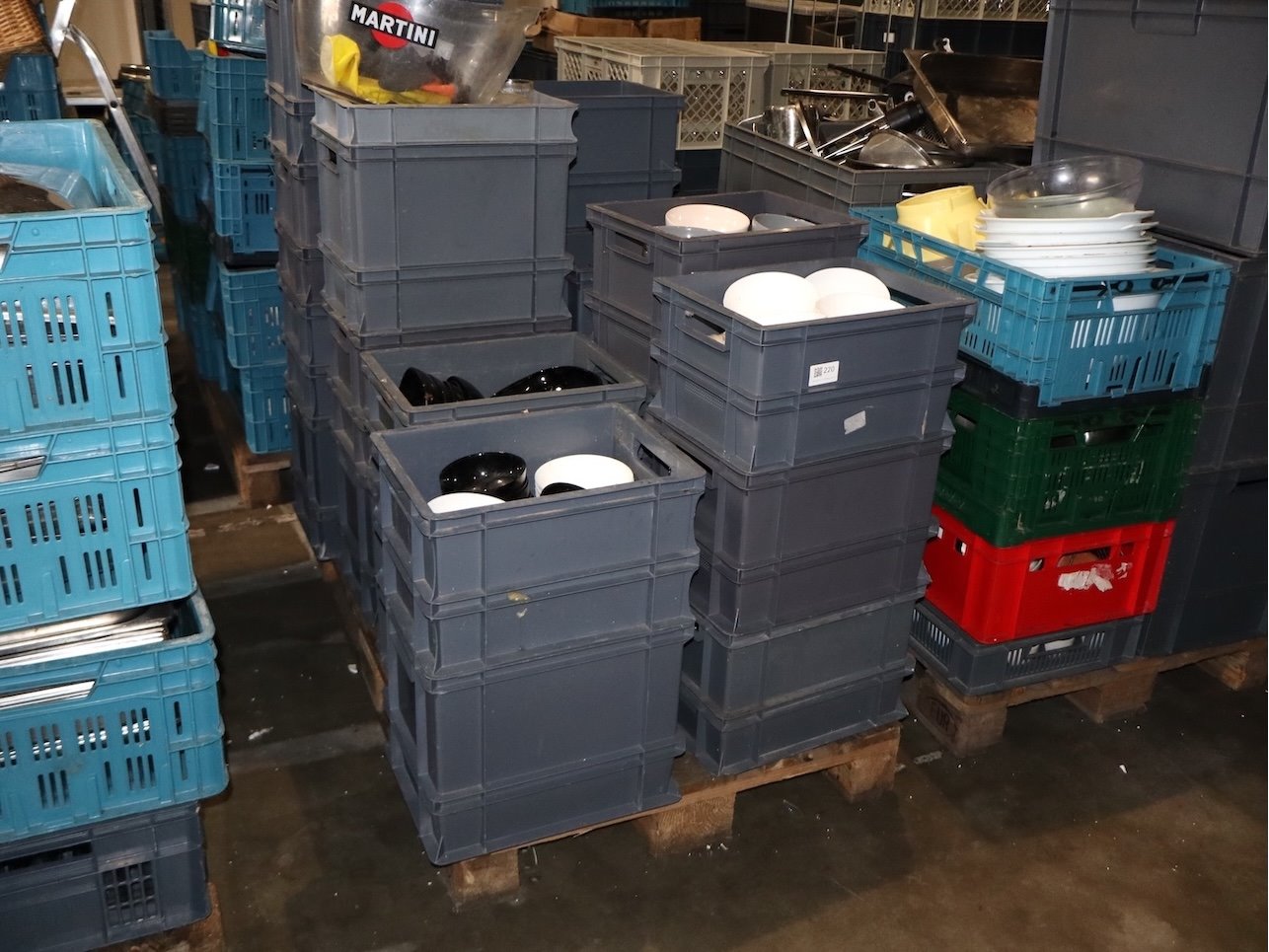 ONGEWASSEN!!! Inhoud Pallet, Inclusief Bakken. Kommen, Borden,...