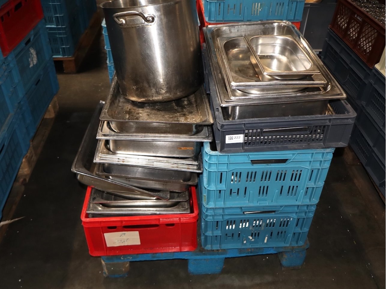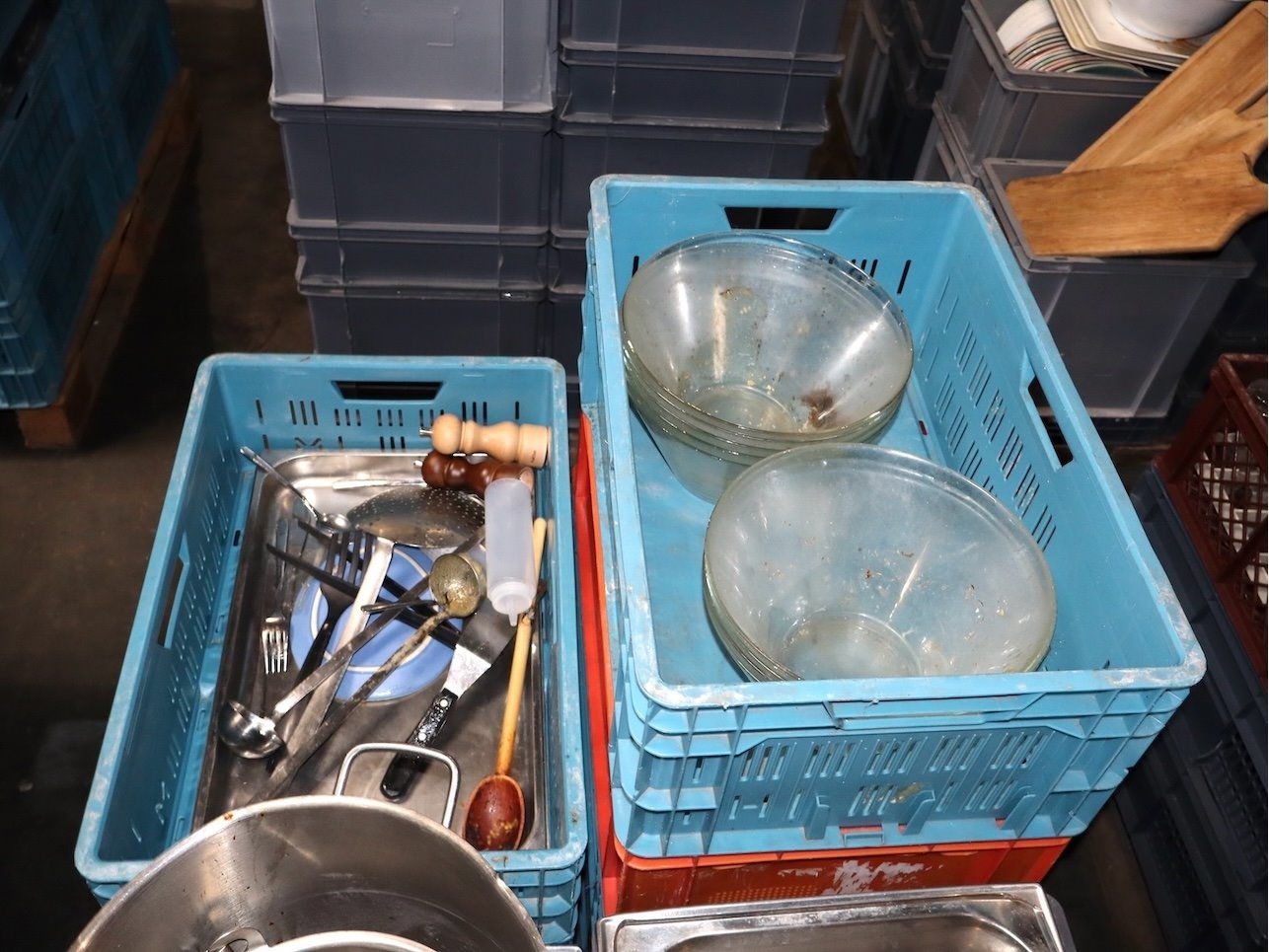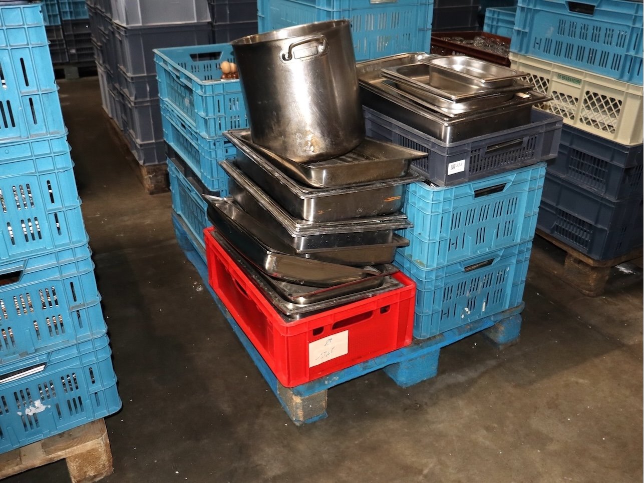 ONGEWASSEN!!! Inhoud Pallet, Inclusief Bakken. Gastronorm, Schalen,...
