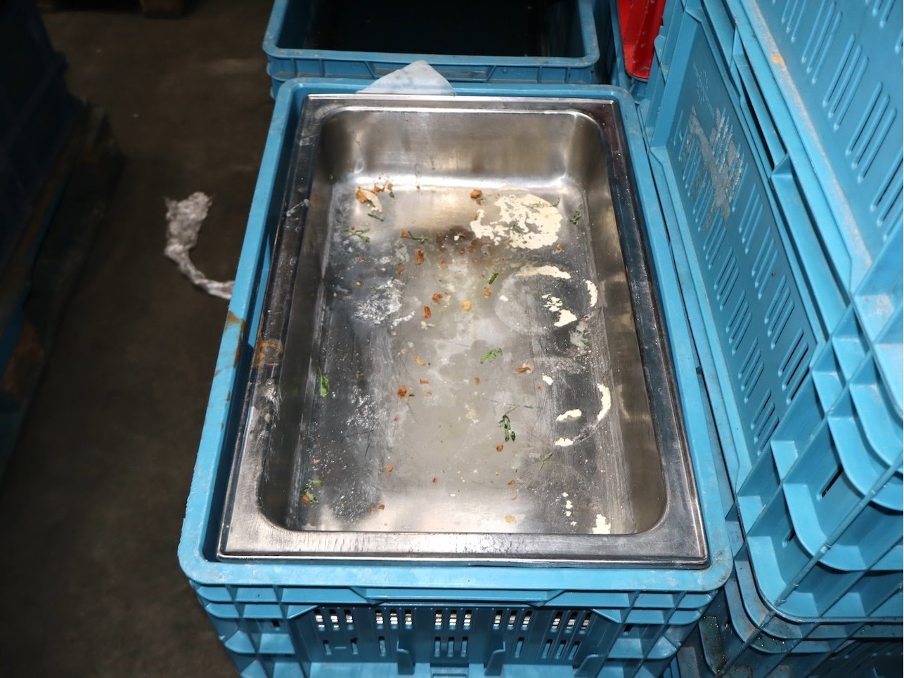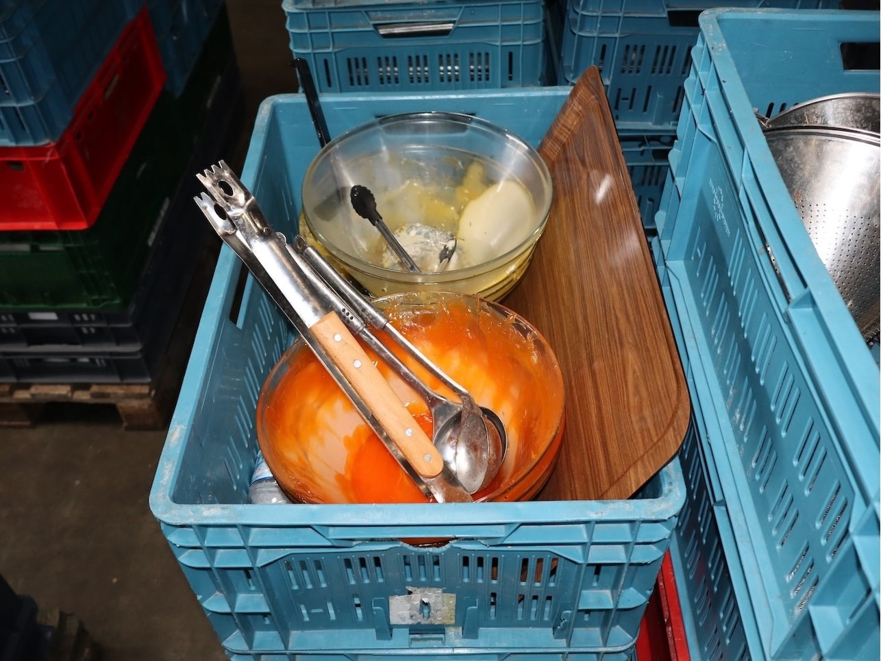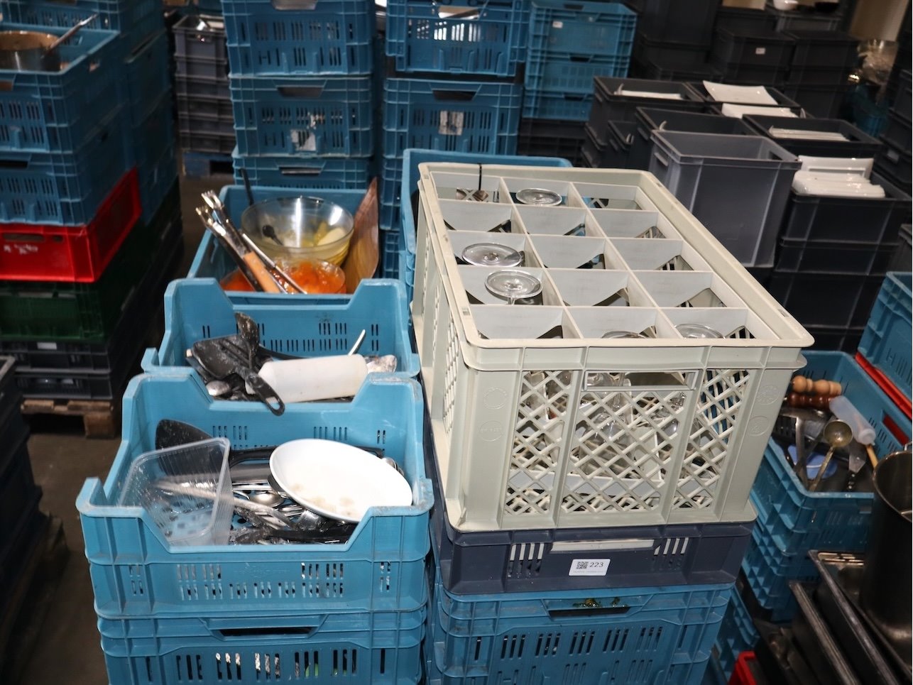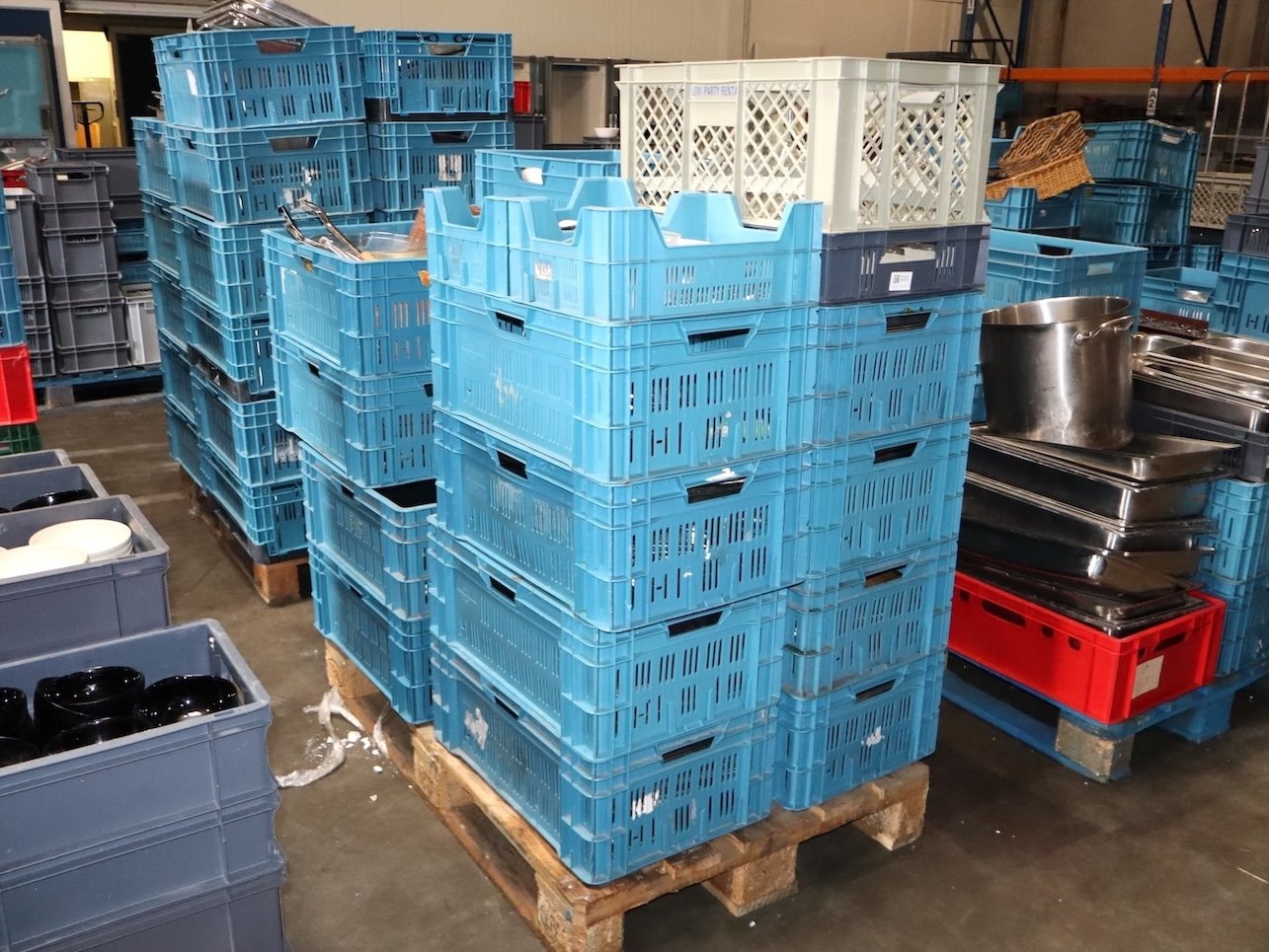 ONGEWASSEN!!! Inhoud Pallet, Inclusief Bakken. Gastronorm, Glazen,...