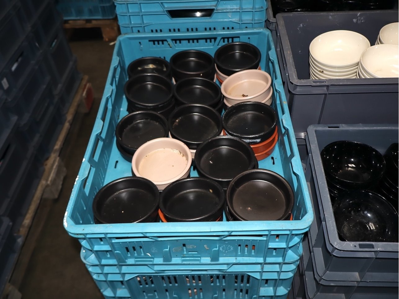 ONGEWASSEN!!! Inhoud Pallet, Inclusief Bakken. Kommen, Schaaljes,...