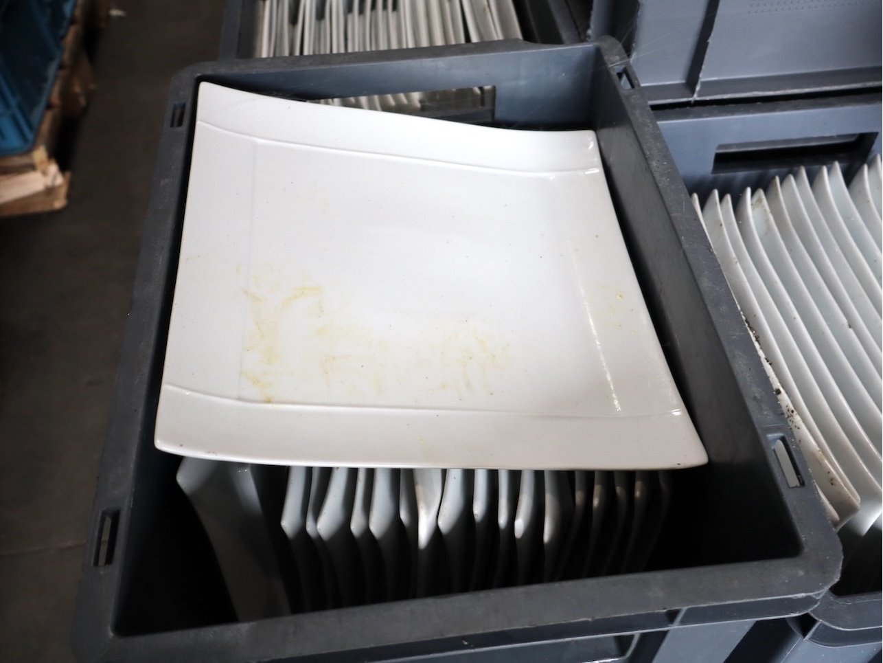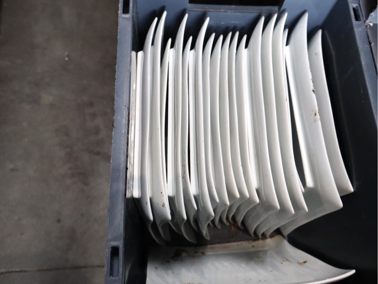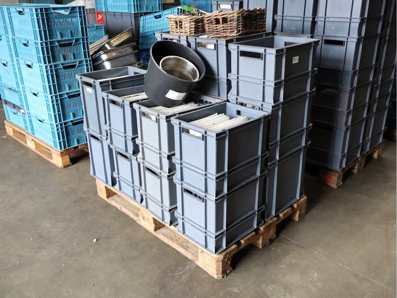 ONGEWASSEN!!! Inhoud Pallet, Inclusief Bakken. Borden, Bestek,...