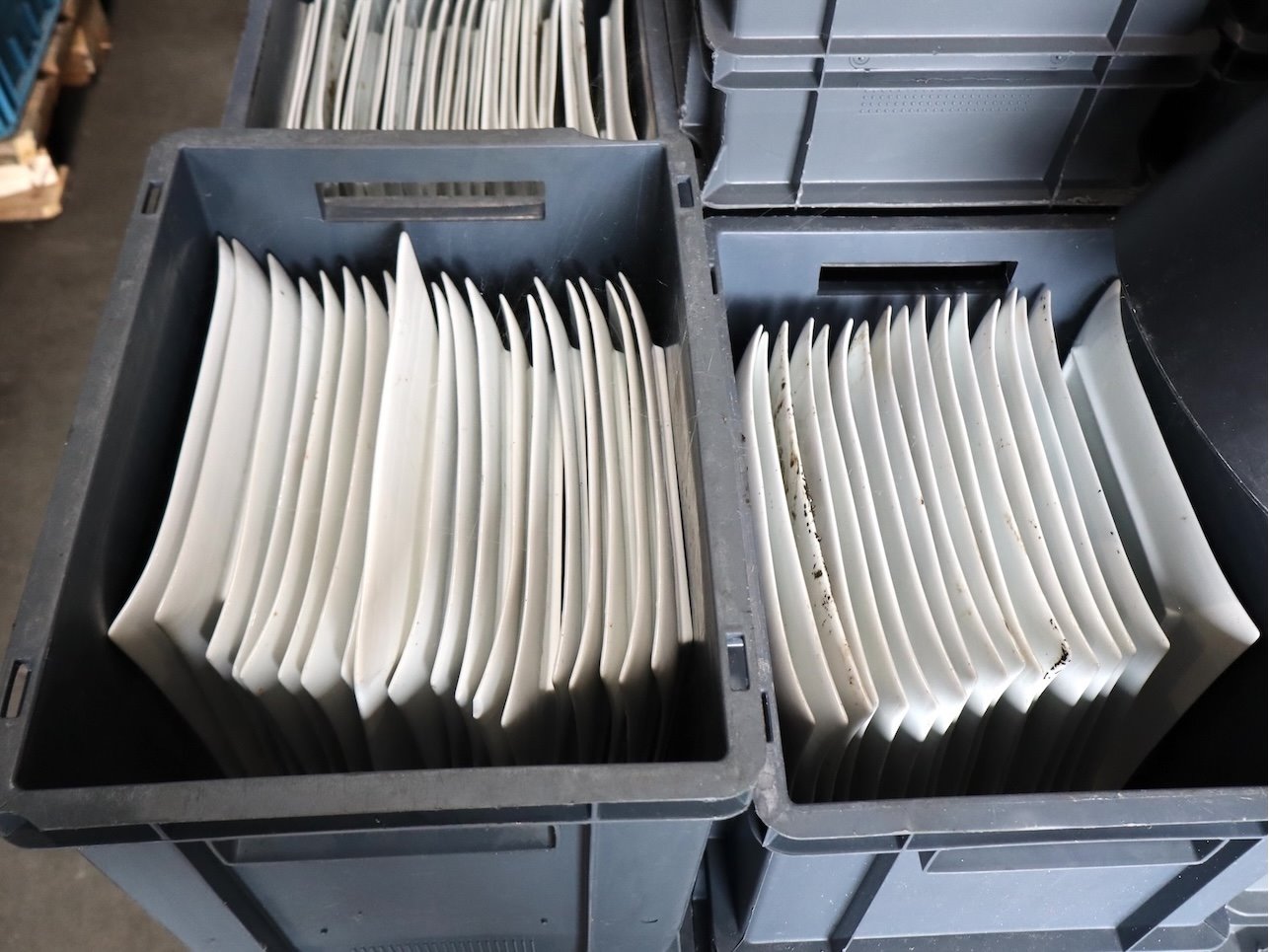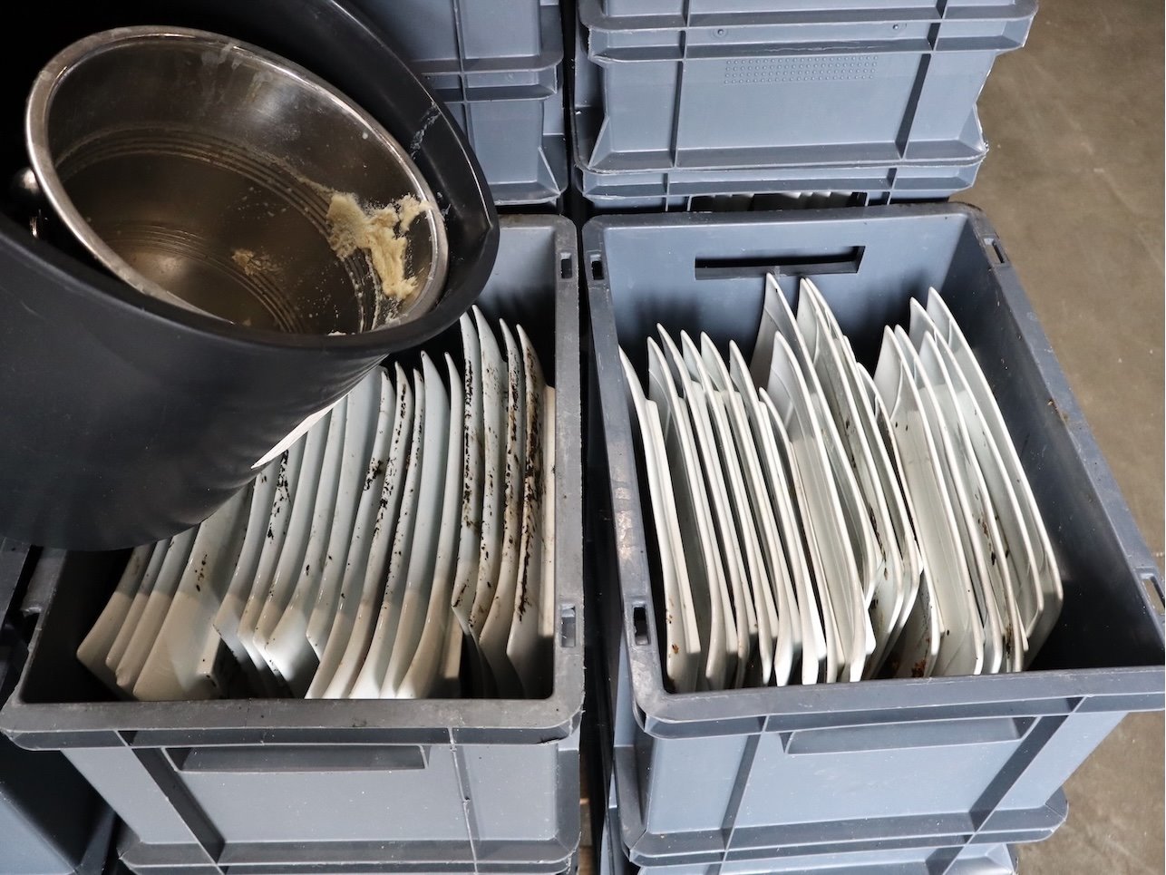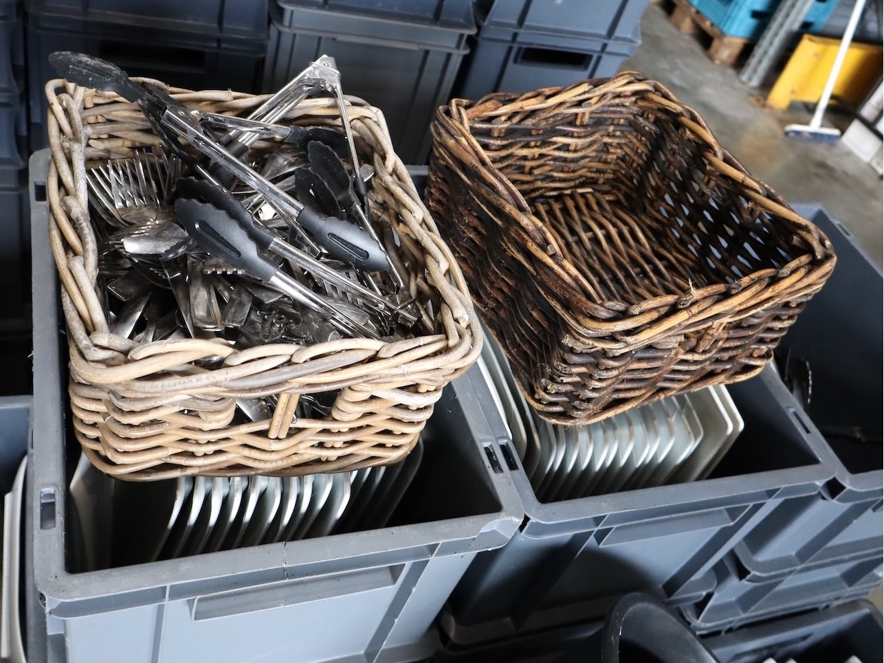 ONGEWASSEN!!! Inhoud Pallet, Inclusief Bakken. Borden, Bestek,...