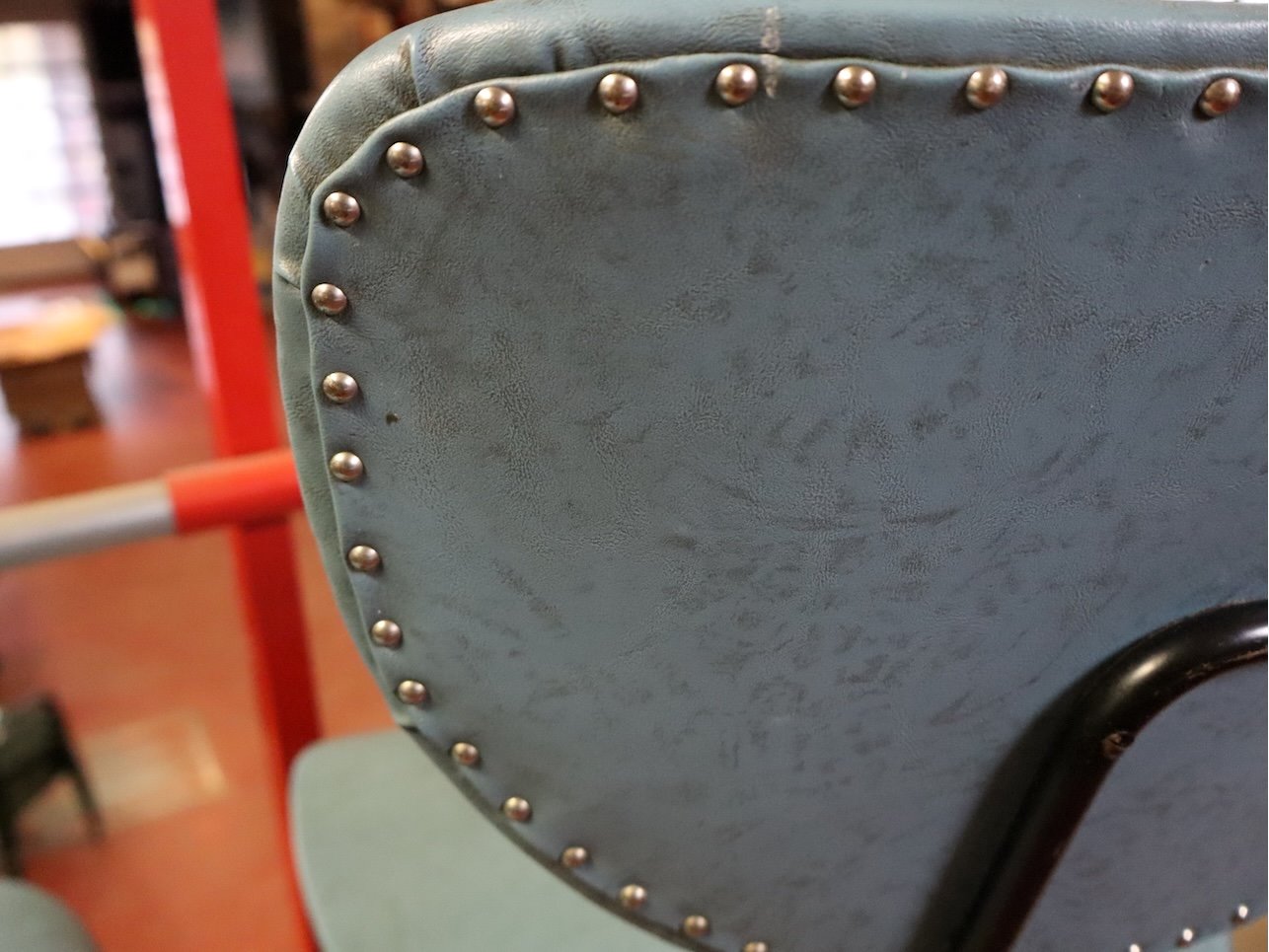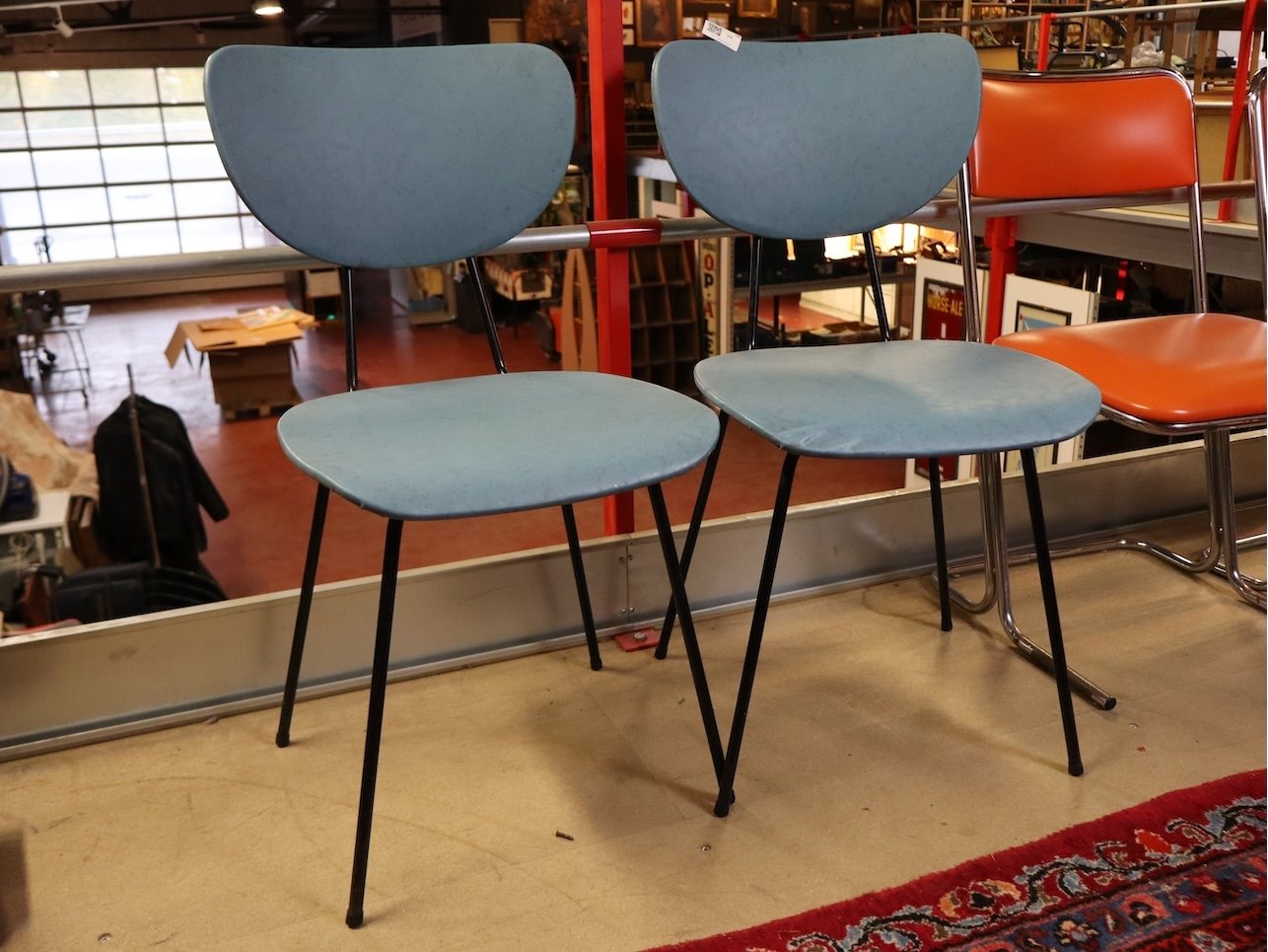 Vintage blauw leder simili stoel (x2)
