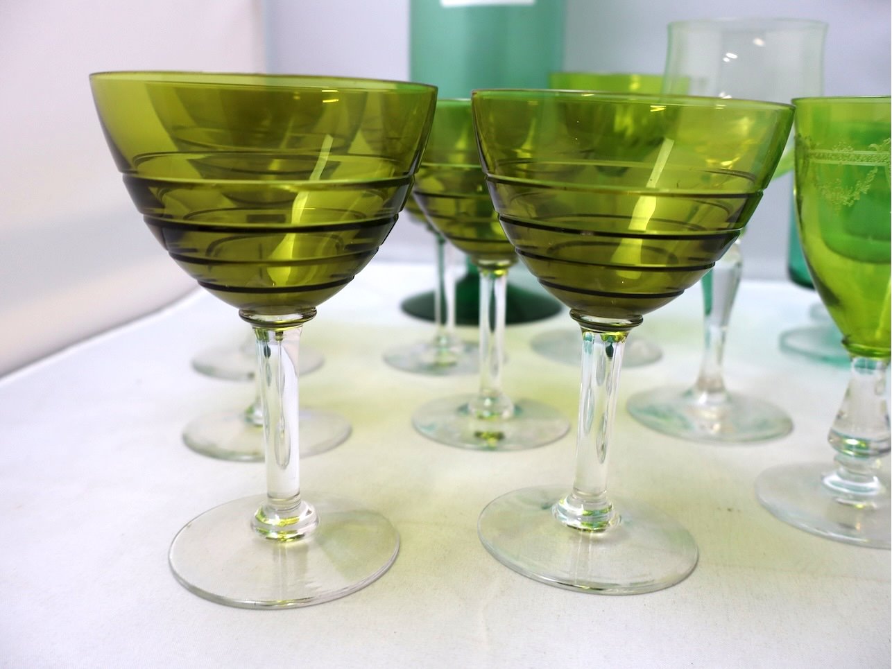 Partij groen glaswerk