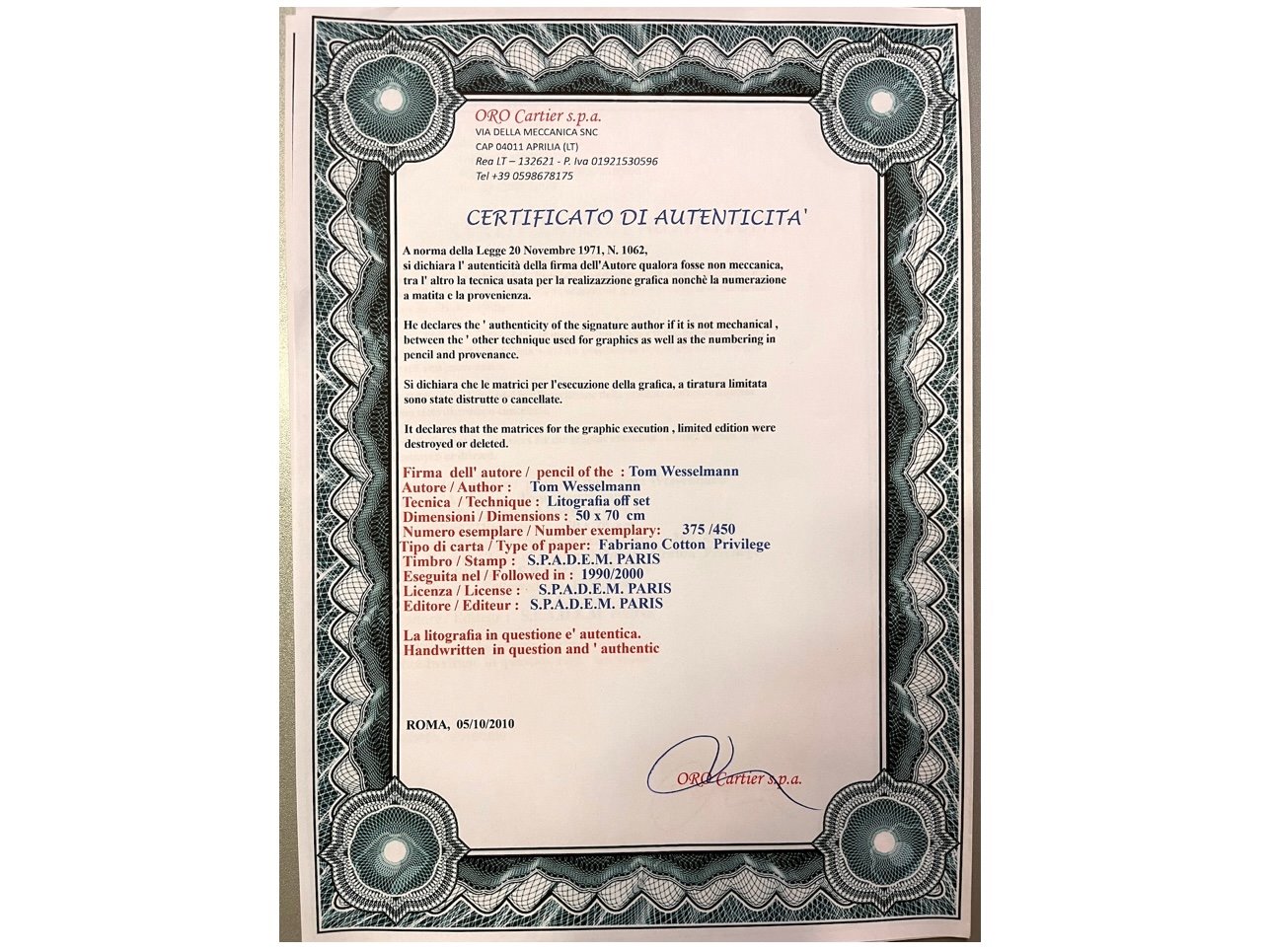 Afmeting: plm 70x50cm, 375/450, Certificaat aanwezig