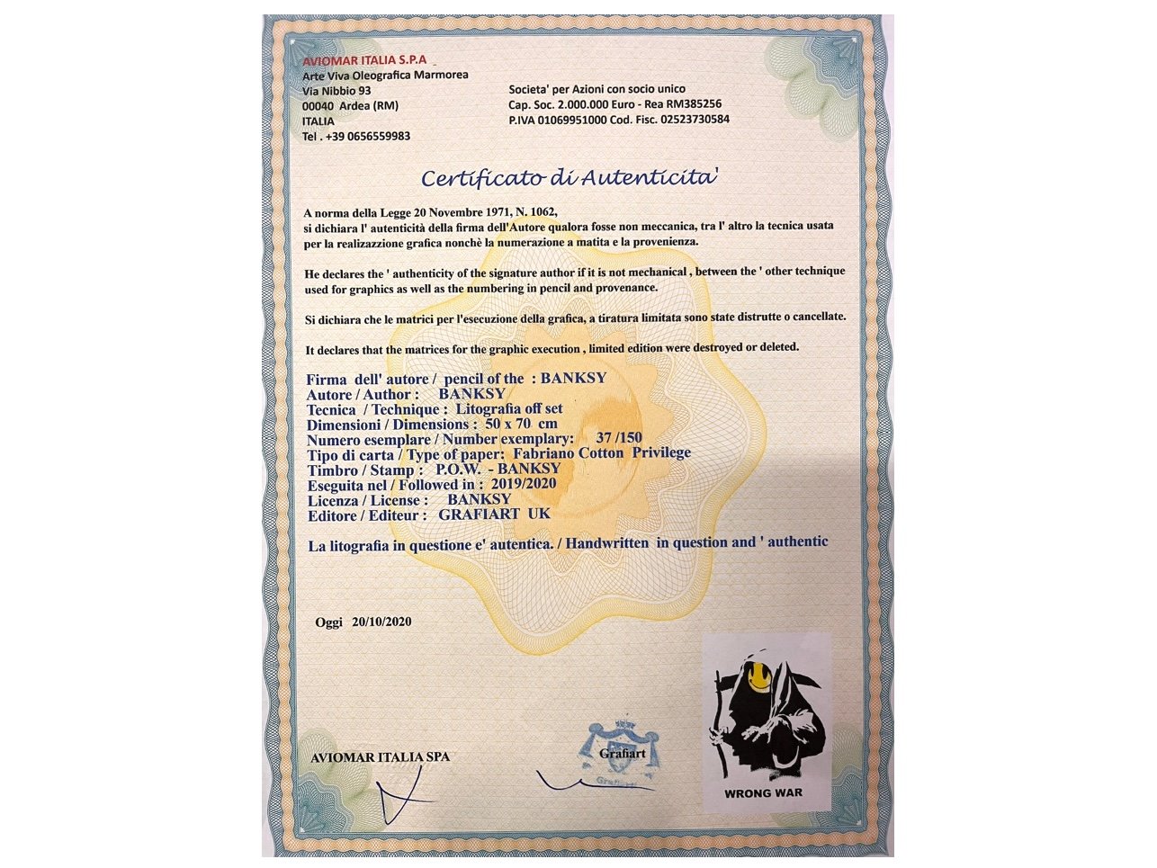 Afmeting: plm 70x50cm, 37/150, Certificaat aanwezig
