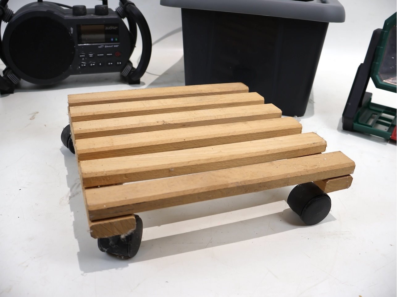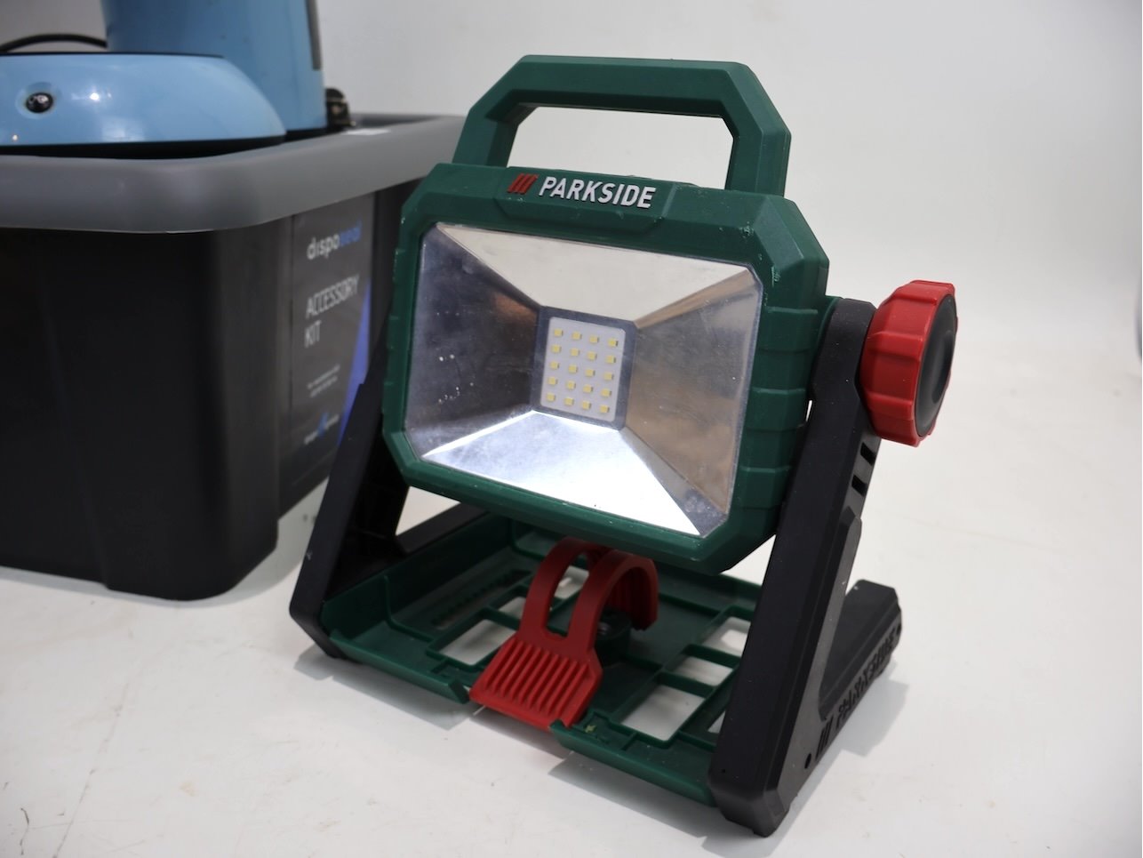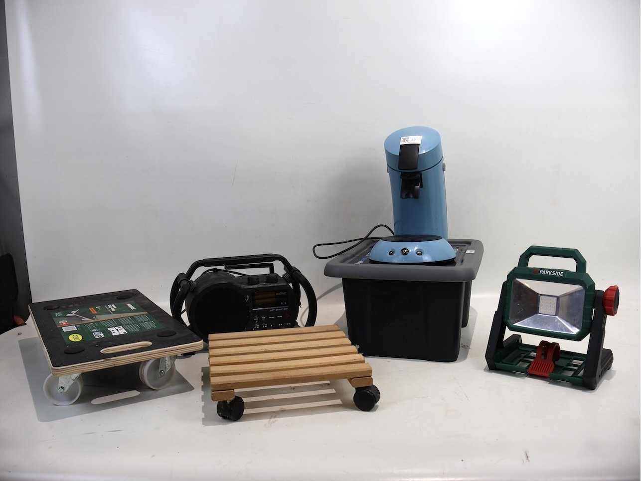 Philips Senseo, Audisse Radio, Parkside Werflamp, Intern Transport en Plastic Bak