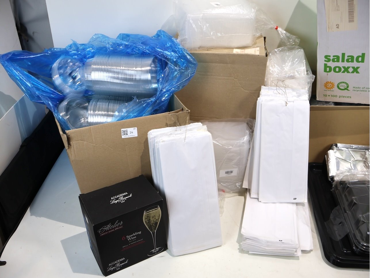 Plastic Bakjes, Papieren Zakjes, Deksels,...