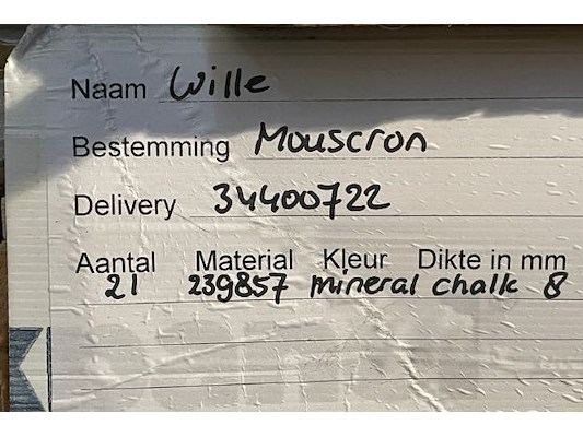 Ongeveer 20 platen gevelbekleding, verschillende formaten, soorten, ook resten, bvb mineral chalk 3050 x 1200 x8 mm, Natu...