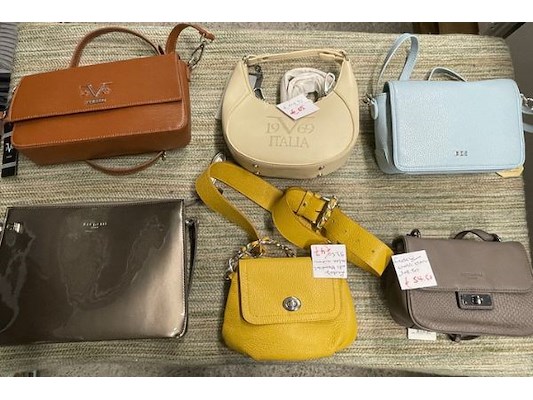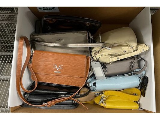 Ongeveer 37 handtassen en aktetassen, diverse merken als Solao, Loriane, 19V69 Italia, Hexagoan, diverse nieuwprijzen zoa...
