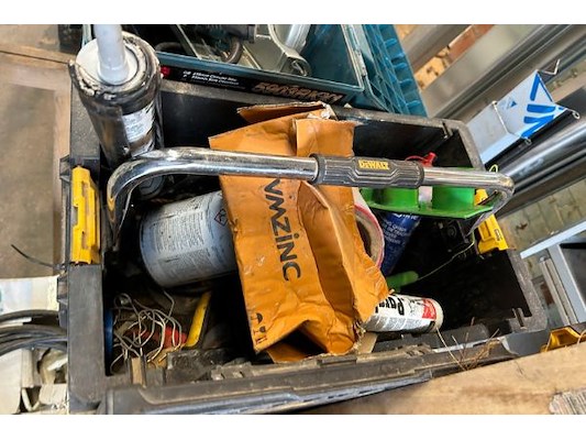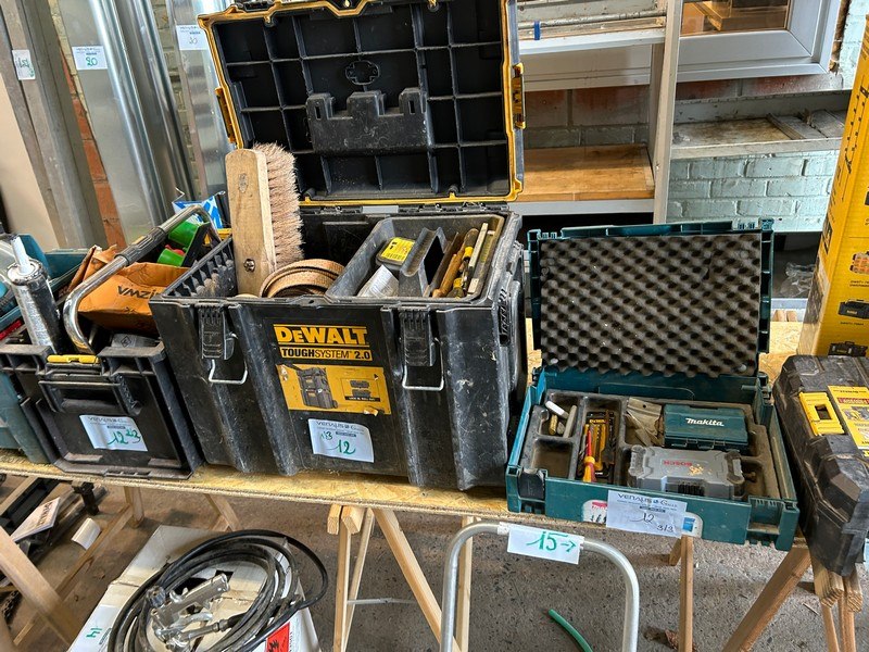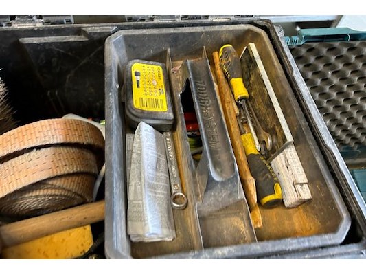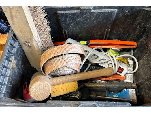 Divers gereedschap waaronder schroevendraaiers, hamer, bitsenset, tangen, waterpas, ...