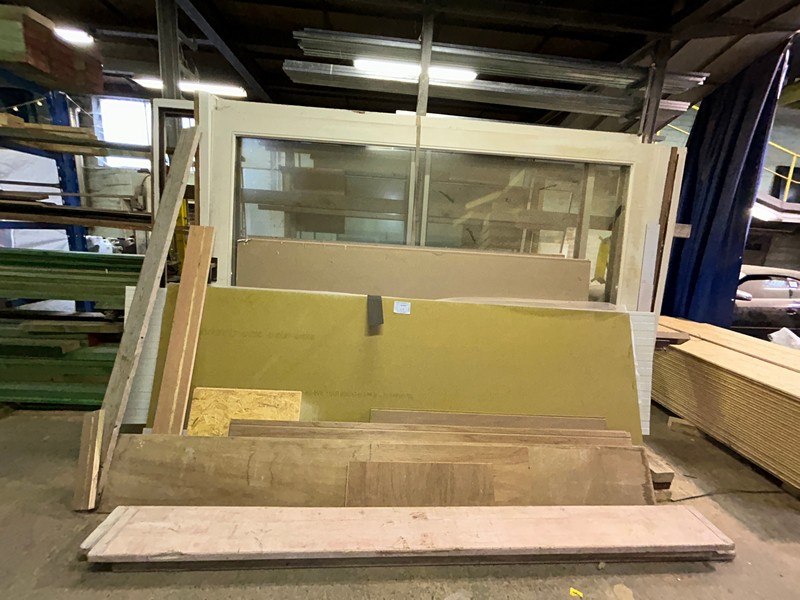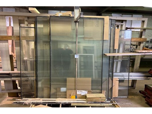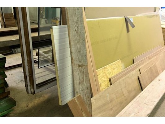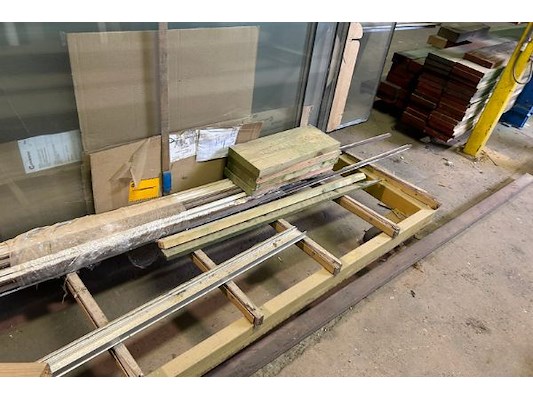 Als houten planken, ramen in diverse maten, langste is ongeveer 400 cm, bok 238 x 180 x 213 cm hoog