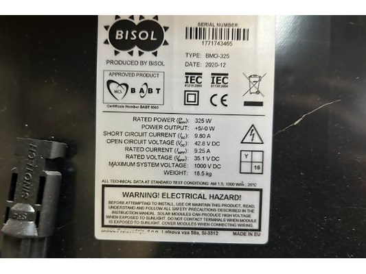 166.5 x 100.5 x 3.5 cm, type BMO-325, bouwjaar 12/2020, W325, 1000V