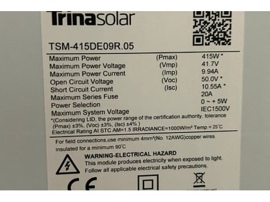 176 x 113.5 x 3 cm, TSM-415DEO9R.05, 415W, IEC 1500V