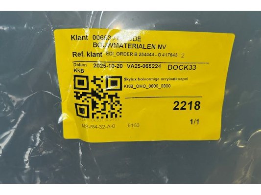 Stylux lichtkoepel 800 x 800 mm, rookafvoer 1brand-1/comfortgroep, type SVM EI 24V-5A skymax NBN, nieuw in verpakkiing