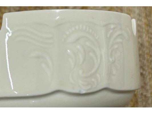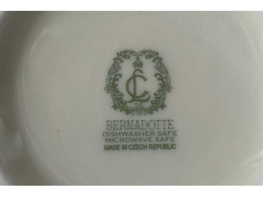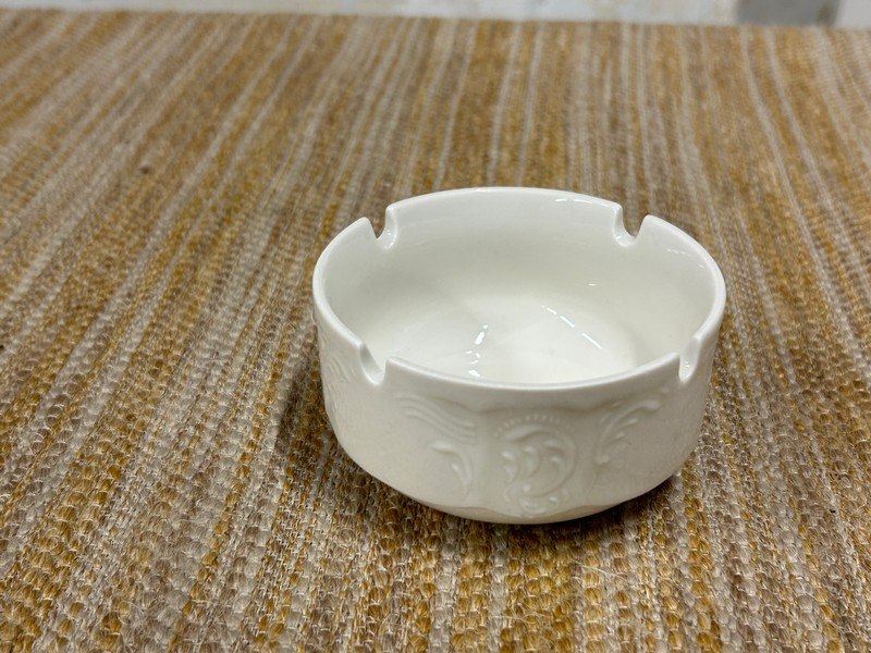 10 cm diameter x 5 cm, stempel onderaan, + bak