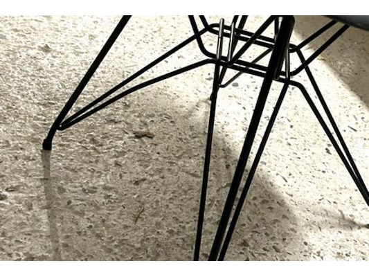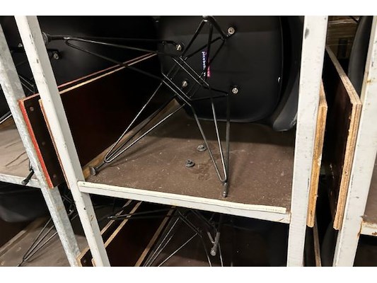 8 zwarte stoelen, zithoogte 45 cm, kar 60 x 99.5 x 188 cm hoog, 4 verdiepingen, zit ook in lot 2750