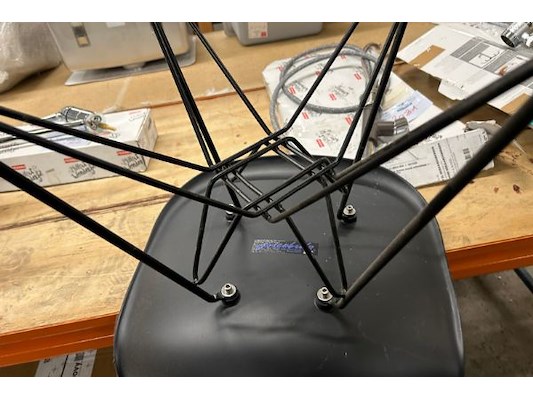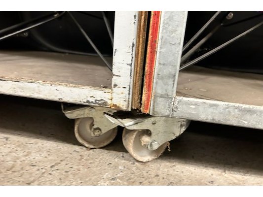 16 zwarte stoelen, zithoogte 45 cm, 2 karren 60 x 99.5 x 188 cm hoog, 4 verdiepingen, zit ook in lot 2750
