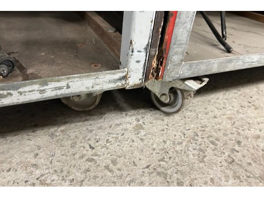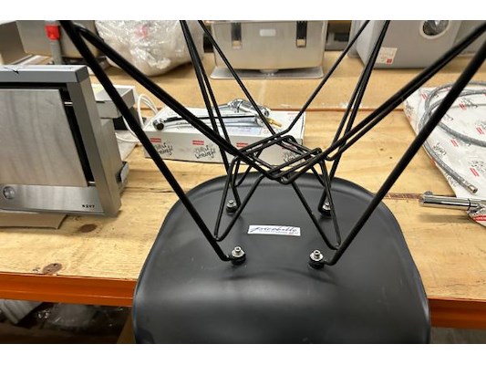 32 zwarte stoelen, zithoogte 45 cm, 4 karren 60 x 99.5 x 188 cm hoog, 4 verdiepingen, zit ook in lot 2750