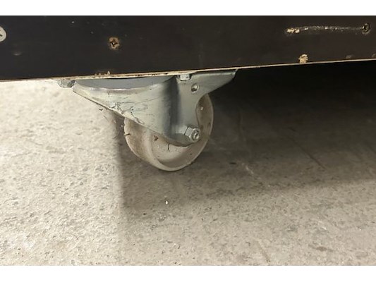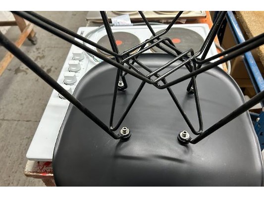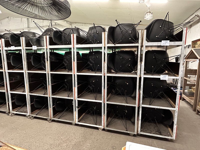 40 zwarte stoelen, zithoogte 45 cm, 5 karren 60 x 99.5 x 188 cm hoog, 4 verdiepingen, zit ook in lot 2750