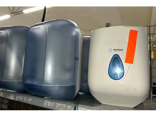 Waaronder 9 papierhouders, producten, wegwerphandschoenen, desinfectie dispeners