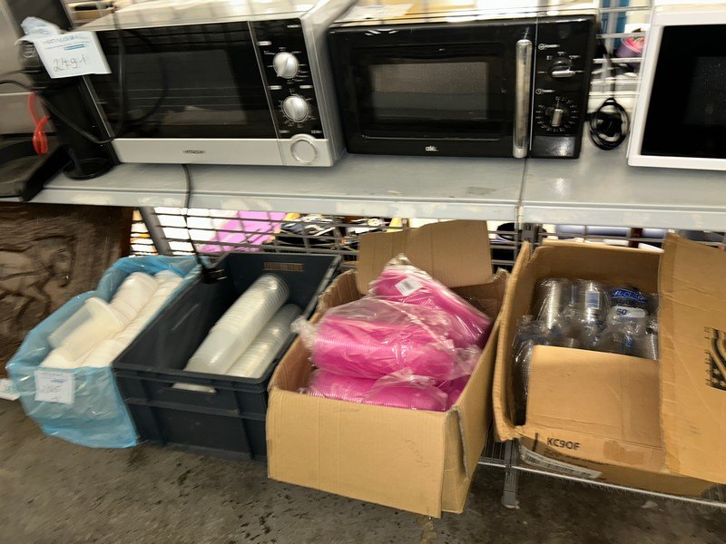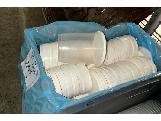 Ongeveer 1000 potjes/bekers, waaronder 266 ml, 12 cm diameter x 6.5 cm hoog, 11.5 cm diameter x 14 cm hoog