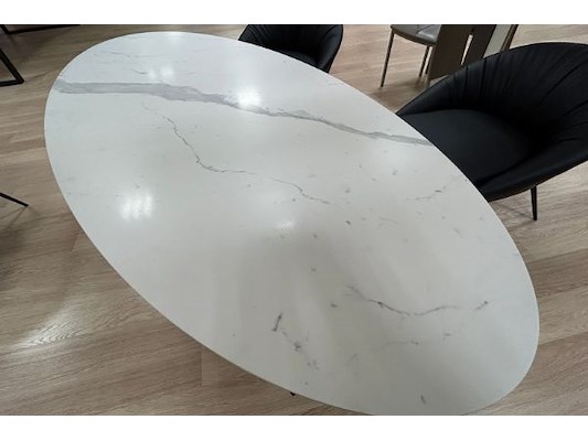 Tafel 220 x 100 x 68 cm hoog, 4 lounge stoelen Zora PU zwart, winkelwaarde 3413 euro