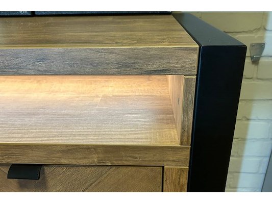 Dressoir 244 x 87 x 50 cm, barkast 120 x 188 x 50 cm, tafel 226 x 78 x 120 cm, lichte schade aan rand, met verlichting in...